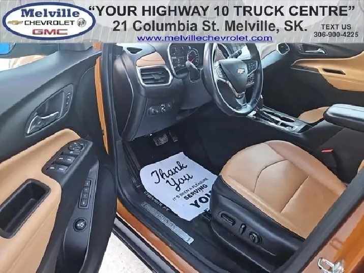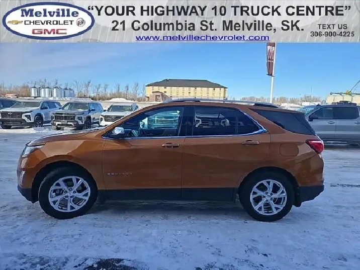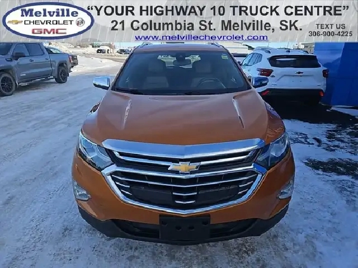 Our Equinox's trim level is Premier. Stepping up to this top of the line Equinox Premier is a wise choice as it comes loaded with luxurious leather seats, a power liftgate, larger aluminum wheels, HID headlights, a larger 8 inch touchscreen display with Apple CarPlay and Android Auto, wireless charging, an 8-way power driver seat with memory settings and dual-zone climate control. It also includes a remote engine start, heated front seats, a rear view camera, 4G WiFi capability, steering wheel with audio and cruise controls, Teen Driver technology, Bluetooth streaming audio, StabiliTrak electronic stability control and a split folding rear seat to make loading and unloading large objects a breeze. The Premier adds increased safety features as well, such as blind spot detection, lane change assist, rear cross traffic alert and rear park assist plus much more. This vehicle has been upgraded with the following features: Leather Heated Seats, Power Tailgate, Aluminum Wheels, Apple CarPlay, Android Auto, Remote Start, Park Assist.