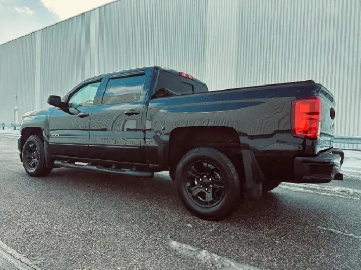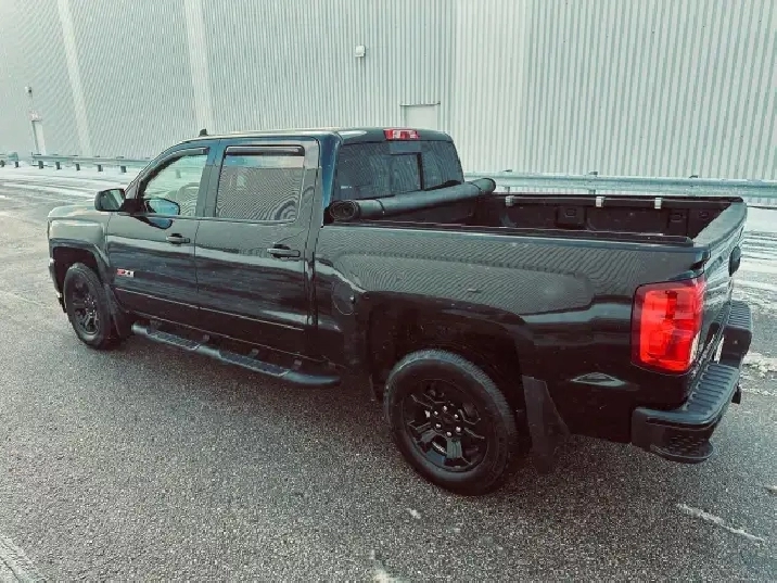 2018 Chevrolet Silverado 1500 Crew Cab LTZ Z71 – Triple Black accident-free (verified Carfax) local Ontario personal-use truck since new with 214,522 kms, finished in metallic black exterior over black interior giving it the sought-after Triple Black appearance, sitting on sporty black alloy wheels wrapped in quality Michelin tires. Well equipped with heated power front seats, middle and overhead console, backup camera, LED exterior lighting, unique Z71 off-road appearance package, factory spray-in bed liner, matching black running boards, keyless entry with remote start, delivering both style and capability. A strong, clean, and well-maintained Silverado that offers excellent value in a Well Equipped LTZ Z71 configuration — ready for work or daily driving.