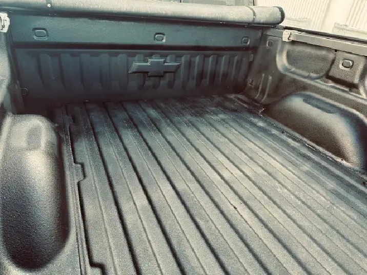 - Bedliner, Spray-on, Pickup box bedliner with bowtie logo. Liner is permanently bonded to the truck bed providing a water tight seal. The textured, non-skid surface is black in colour and robotically applied. Spray-on liner covers entire bed interior surface below side rails, including tailgate, front box top rail, gauge hole plugs and lower tie down loops.