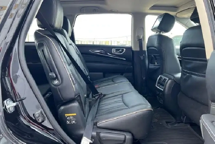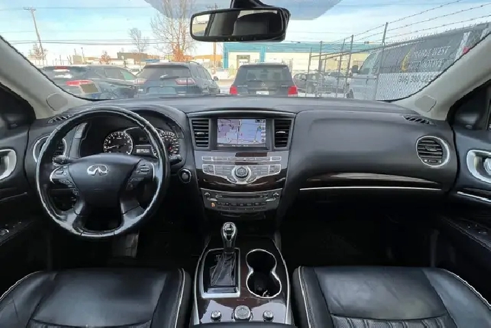- Radio: AM/FM/CD w/MP3 Playback Capability -inc: 6-speaker audio system, Radio Data System (RDS), speed-sensitive volume control, single in-dash CD player, 8" colour vehicle information display, INFINITI InTouchTM system, INFINITI InTouchTM apps, SiriusXM Satellite Radio w/90 day complimentary trial, voice recognition for audio, Bluetooth, and vehicle information including music search by voice, streaming audio via Bluetooth wireless technology, USB connection port for iPod interface and other compatible devices, illuminated steering wheel-mounted audio controls, auxiliary audio/video input jacks in front centre console, SMS/email display function and 3 USB charging ports: 1 rear console-mounted, 2 3rd row