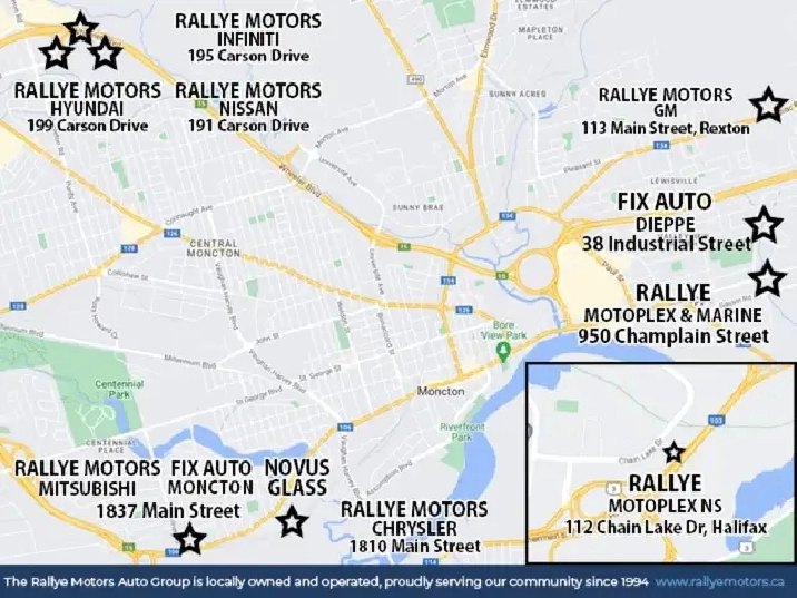 To ensure we deliver you the service levels you deserve please call ahead and schedule an appointment with one of our Sales Specialist.AS TRADED condition is identified as a vehicle that has not had a mechanical inspection by the dealer after the prior owner traded this vehicle nor has the Dealer completed any mechanical repairs. There is a likelihood repairs will be required to meet minimum Provincial Safety Inspection requirements. Any reconditioning or N.B. Safety required repairs are the sole responsibility of the purchaser. With second-to-none quality control, unbeatable prices and incredible selection, you can be confident you will find the deal you are looking for at Rallye Motors! Our Value Center is located at 1810 Main St, Moncton NB at Rallye Motors Chrysler, hope to see you soon! Please visit dealer for all pricing inquiries as our website undergo routine maintenance and include live inventory feeds from various sources and may inadvertently contain errors.