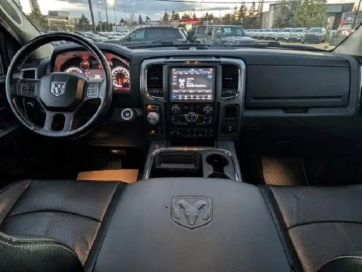 - GVWR: 3 129 KGS (6 900 LBS) (STD),TRANSMISSION: 8-SPEED TORQUEFLITE AUTOMATIC (DFK),REAR WINDOW DEFROSTER,SPORT PREMIUM GROUP -inc: 9 Alpine Speakers w/Subwoofer A/C w/Dual-Zone Automatic Temperature Control Humidity Sensor,POWER SUNROOF,BLACK LEATHER-FACED FRONT VENTED BUCKET SEATS -inc: Power 10-Way Driver & 6-Way Passenger Seats Front Heated Seats Heated Steering Wheel Fold-Flat Load Floor w/Storage Front Ventilated Seats,ELECTRONIC TRAILER BRAKE CONTROLLER,SPRAY-IN BEDLINER,WHEELS: 20 X 9 POLISHED ALUMINUM -inc: Locking Lug Nuts (STD),QUICK ORDER PACKAGE 26L SPORT -inc: Engine: 5.7L HEMI VVT V8 w/FuelSaver MDS Transmission: 8-Speed TorqueFlite Automatic (DFK) Sport Group Bright Dual Rear Exhaust Tips,POWER ADJUSTABLE PEDALS,CONVENIENCE GROUP -inc: Keyless Enter 'N Go w/Push-Start Remote Proximity Keyless Entry Auto High-Beam Headlamp Control Rain-Sensing Windshield Wipers,SPORT PERFORMANCE HOOD,ENGINE: 5.7L HEMI VVT V8 W/FUELSAVER MDS (STD),MONOTONE PAINT APPLICATION W/ASX,MONOTONE PAINT APPLICATION,PARKVIEW REAR BACK-UP CAMERA,BRILLIANT BLACK CRYSTAL PEARL,PARK-SENSE FRONT/REAR PARK ASSIST SYSTEM,CLASS IV HITCH RECEIVER,REMOTE START & SECURITY ALARM GROUP -inc: Remote Start System Security Alarm,FRONT & REAR ALL-WEATHER FLOOR MATS,3.21 REAR AXLE RATIO (STD),Traction Control,Front Head Air Bag,Telematics,AM/FM Stereo,Power Windows,Requires Subscription,Leather Steering Wheel,Rear Head Air Bag,Power Folding Mirrors,Fog Lamps,Front Side Air Bag,Requires Subscription,Vinyl Seats,Power Door Locks,Driver Illuminated Vanity Mirror,Cloth Seats,Power Door Locks,Automatic Headlights,Bluetooth Connection,Tire Pressure Monitor,Conventional Spare Tire,MP3 Capability,Trip Computer,Power Mirror(s),Driver Adjustable Lumbar,Power Driver Seat,Power Door Locks,Traction Control,Auto-Dimming Rearview Mirror,Pass-Through Rear Seat,Telematics,Steering Wheel Audio Controls,Power Windows,Bucket Seats,Integrated Turn Signal Mirrors,Privacy Glass,Smart Device Integration,Driver Vanity Mirror,Adjustable Steering Wheel,Satellite Radio,Stability Control,Passenger Air Bag Sensor,Trip Computer,Universal Garage Door Opener,Variable Speed Intermittent Wipers,Passenger Vanity Mirror,Intermittent Wipers,Child Safety Locks,Immobilizer,Driver Air Bag,Power Driver Seat,Bluetooth Connection,ABS,Auxiliary Audio Input,Rear Bench Seat,Smart Device Integration,Aluminum Wheels,4-Wheel Disc Brakes,Passenger Air Bag,Heated Mirrors,Passenger Illuminated Visor Mirror,Keyless Entry,Brake Assist,Daytime Running Lights,Power Steering,Cruise Control,Floor Mats,Requires Subscription,Four Wheel Drive,A/C,Smart Device Integration