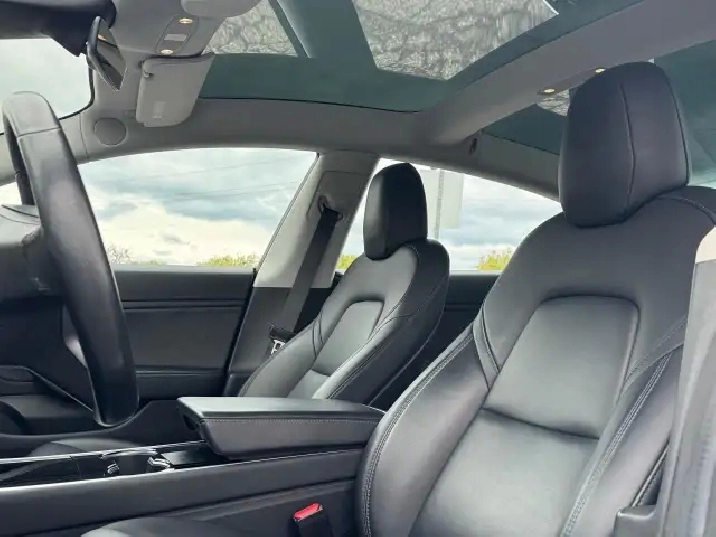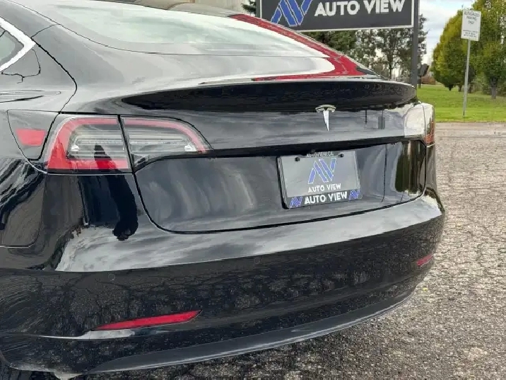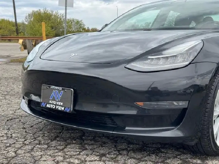 This 2018 Tesla Model 3 Long Range is a dual-motor all-wheel drive (AWD) model. The EPA-estimated range is approximately 499 km for the AWD model and has key features, including a single 15.4-inch central touchscreen that controls most vehicle functions, Autopilot hardware, and an 8-year or 192,000 km warranty for the battery and drive unit.