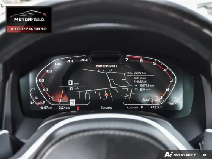 Stunning BMW M850i xDrive Coupe - One Owner - Accident Free - Well Optioned w/ M Aerodynamics Package - M Leather Steering Wheel - BMW Laserlight - M Sport Brake - M Sport Differential - Carbon Roof - Soft Close Doors - Glass Application Crafted Clarity (Crystal Shifter) -Driving Assistant Professional - Harman/Kardon Sound, and More! Finished in Gorgeous Black Carbonshwarz Metallic w/ Fiona Red/Black Leather Interior and Only 75,000KM! Loaded w/ Navigation - Premium Surround System - M Sport Differential - M Sport Brake - Variable Sport Steering - Ambient Light Interior - Rear View Camera - Paddle Shifters - Sport Seats - Upgraded 19" M Sport Wheels - Excellent Shape! Additional Features Include Bluetooth, Keyless Entry, Active Steering, Aluminum Trim, Auto Start-Stop Function, Adaptive Bi-Xenon Headlights, Heated Seats, Heated Steering Wheel, Satellite XM Radio, AM/FM/USB Audio, Plus So Much More! Clean Title Vehicle - Accident-Free - One Owner - CarFAX Verified! As Per OMVIC Regulations, This Vehicle Is Advertised As Not Certified; Certification is Available for $899.