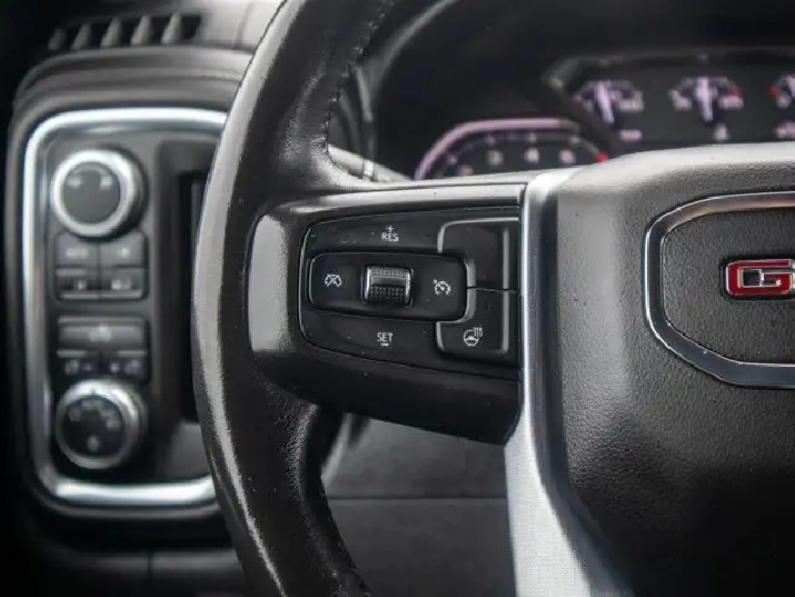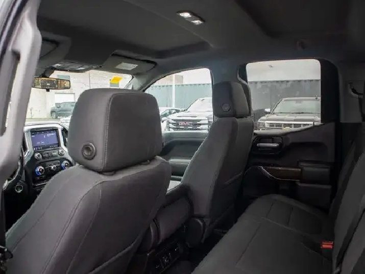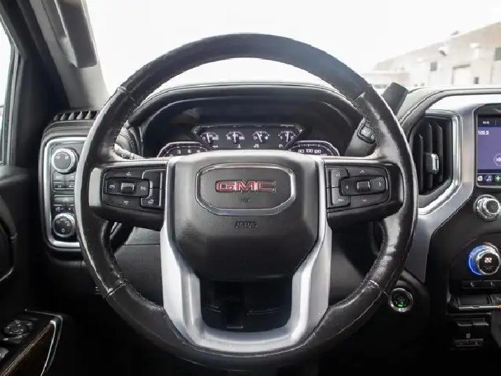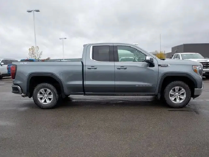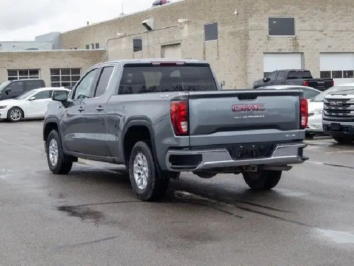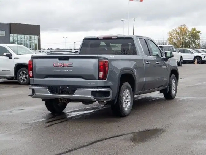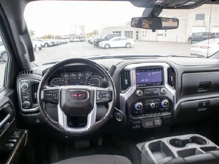 The SLE trim adds a premium touch to the Sierra lineup with features such as a chrome-accented exterior, a power-adjustable driver's seat, dual-zone automatic climate control, and a leather-wrapped steering wheel. Inside, the cabin offers a spacious and durable design with premium cloth seating and smart storage options throughout.