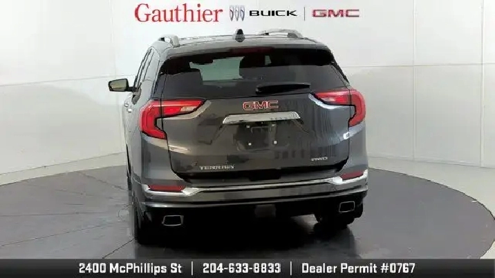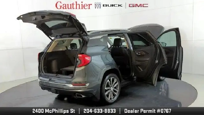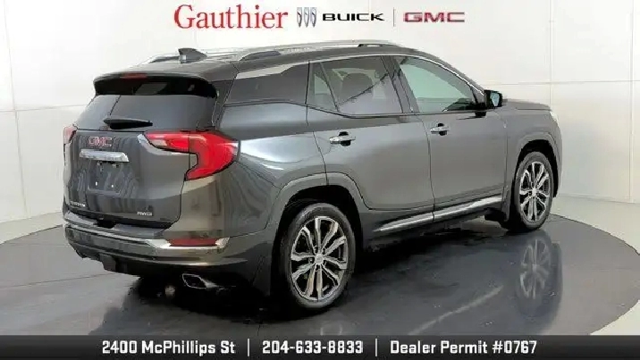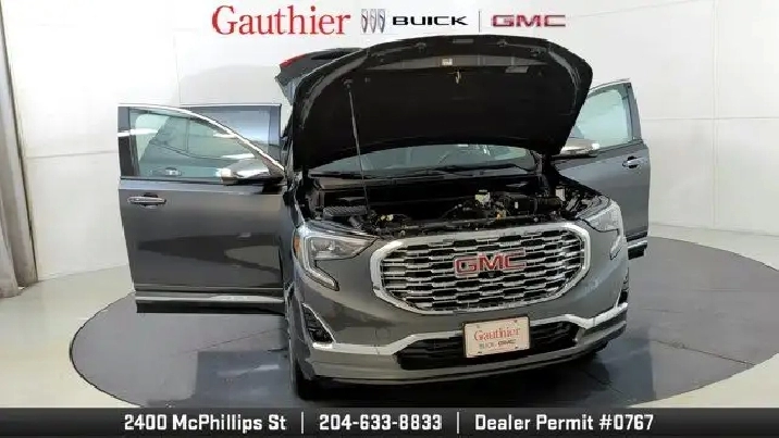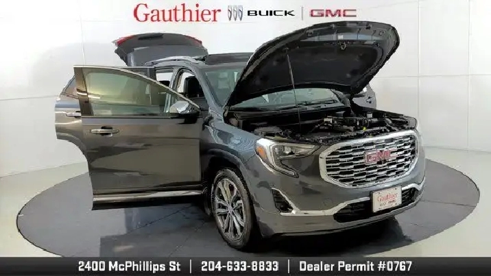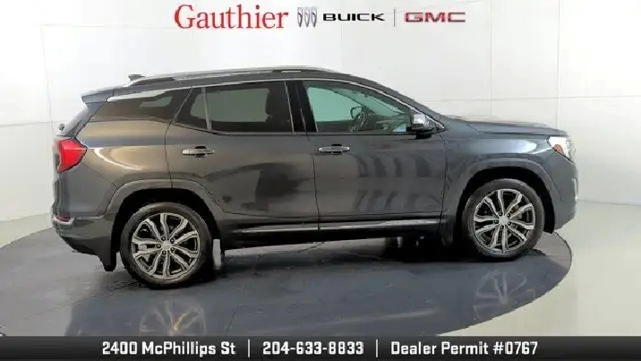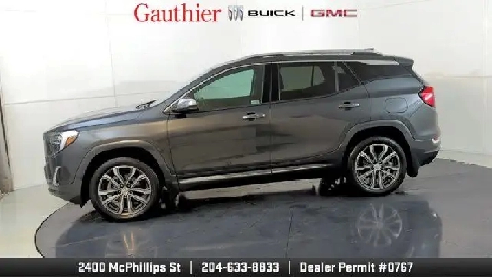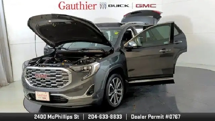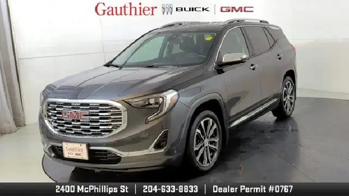 The 2019 GMC Terrain Denali is distinguished by its upscale Denali styling and premium features like 19-inch wheels, LED headlights, leather-appointed seats, and a hands-free power liftgate. It's powered exclusively by a turbocharged 2.0-liter four-cylinder engine with robust performance and offers advanced tech such as an 8'' touchscreen with navigation, Apple CarPlay/Android Auto, and available driver-assist systems including a surround-view camera and adaptive cruise control. The Denali trim also enhances comfort with features like dual-zone climate control, heated seats and steering wheel, premium Bose audio, and a refined interior with thoughtful storage and convenience amenities.