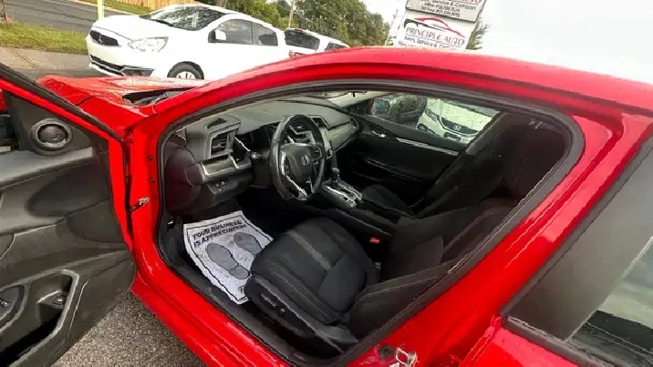 The Honda Civic Features The Reliable 1.8L 4 Cylinder Engine; Providing One Of The Best Fuel Efficiency! Elegant Red Exterior Paired With A Black Interior. Loaded With Keyless Entry, Push to Start, Side Blind Spot Camera, BackUp Reserve Camera, Sunroof, EcoAssist System, Electric Power Steering, Immobilizer Theft-Deterrent System, HandsFreeLink Bluetooth Phone Interface, Intelligent Multi-Information Display w/ TFT Display, Power Locks, Remote Entry w/Electronic Trunk Release, Steering Wheel-Mounted Cruise Control, 60/40 Folding Rear Seat, Heated Front Seats, Bluetooth Streaming Audio, Illuminated Steering Wheel-Mounted Audio Controls, USB port, Text Message Functionality, A/C w/Cabin Filter, Power Windows, Rear-Seat Heater Ducts, Four-speaker AM/FM/CD/MP3 Stereo w/AUXinput & Much More !!!