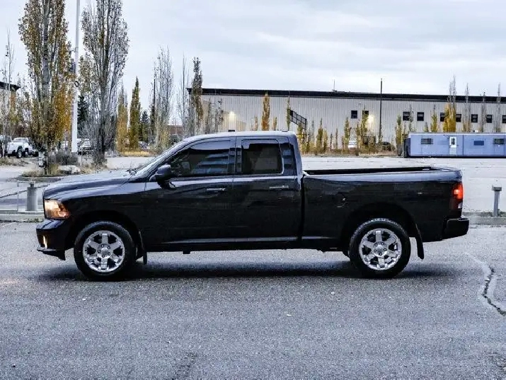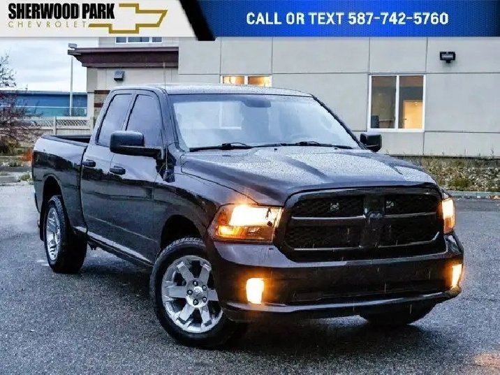The Quad Cab configuration provides spacious seating with a front bench seat for comfort and utility. Additional features include cloth upholstery, air conditioning, cruise control, remote keyless entry, and a rear view camera for added convenience and safety. Built for everyday driving and heavy-duty tasks alike, this Ram 1500 ST Express is a dependable and functional pickup.