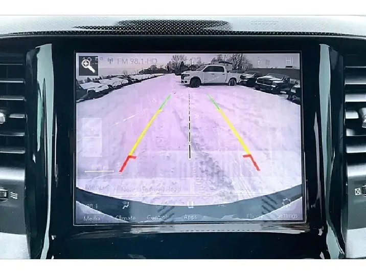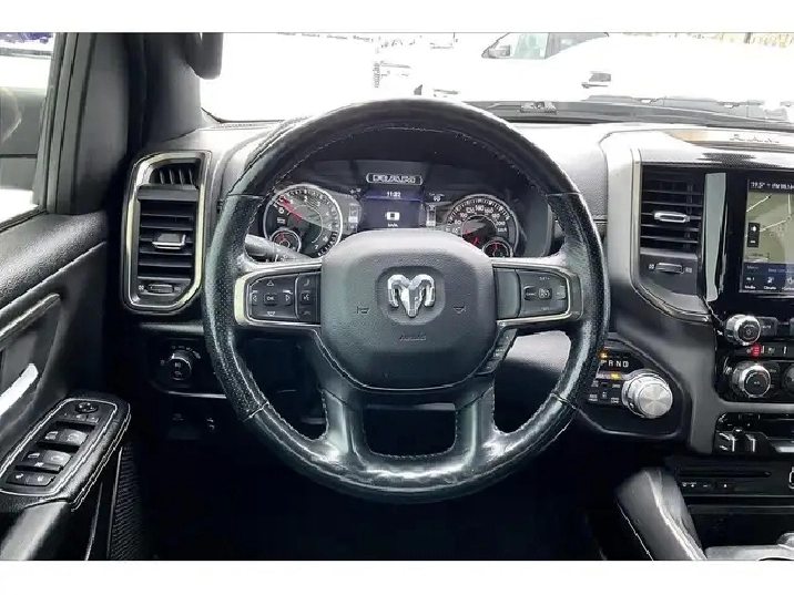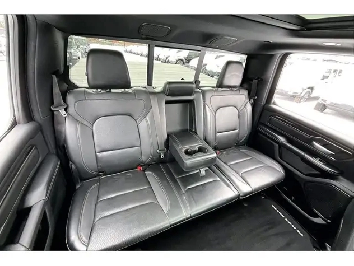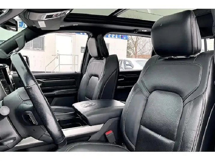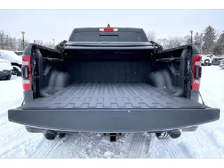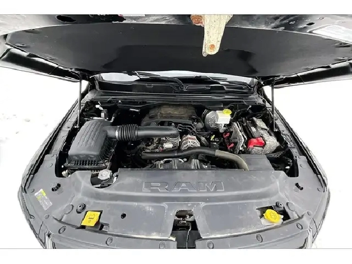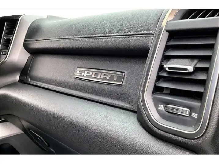 Comfort and style lead the way in this 2019 Ram 1500 Sport, with heated and ventilated leather seats that keep you relaxed in any season, a heated steering wheel and remote start for easy winter departures, a dual pane panoramic sunroof that brightens the quiet cabin, and crew cab space that makes long days feel easy for everyone. Uconnect on the 8.4 inch screen with navigation pairs with Apple CarPlay and Android Auto for simple maps and music, Alpine premium audio adds rich clarity, Park Sense front and rear sensors take the stress out of tight lots, and proximity keyless entry means you just step in and go. Finished in Diamond Black Crystal Pearl with a Sport Performance hood, it backs the look with 4X4 traction, 5.7L V8 power, the Bed Utility Group, Class IV hitch, trailer brake control, a spray in liner, and a tri fold tonneau. Clean Carfax history and this well chosen spec make it a standout value.