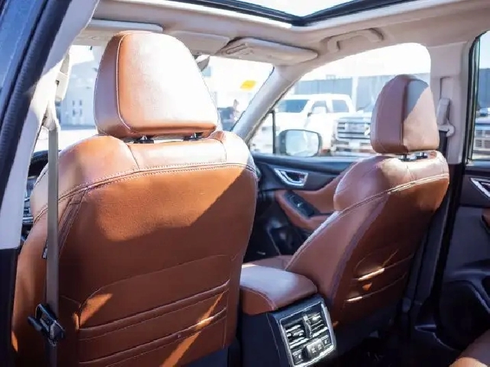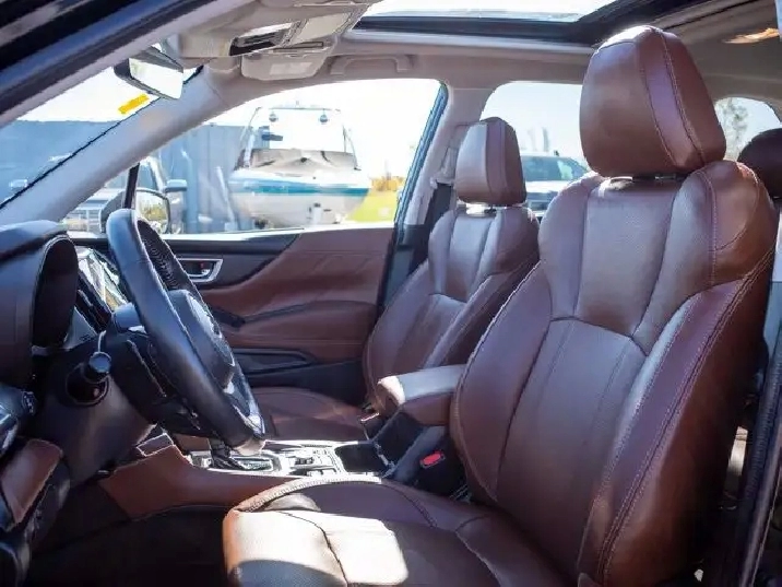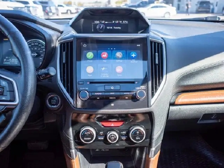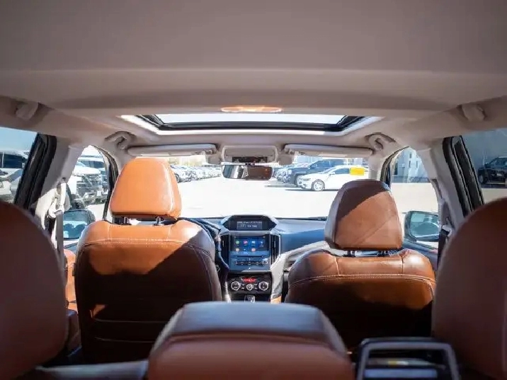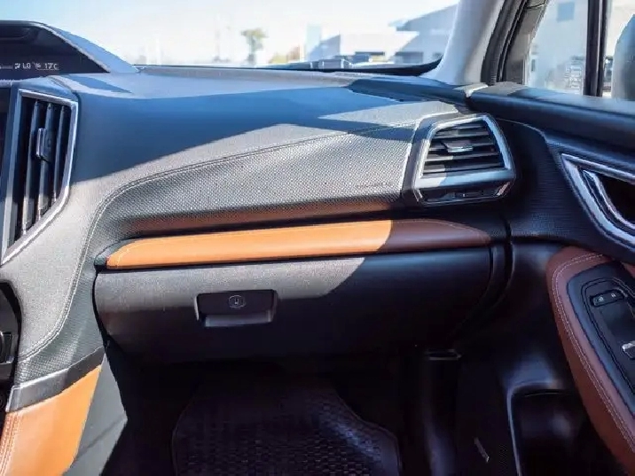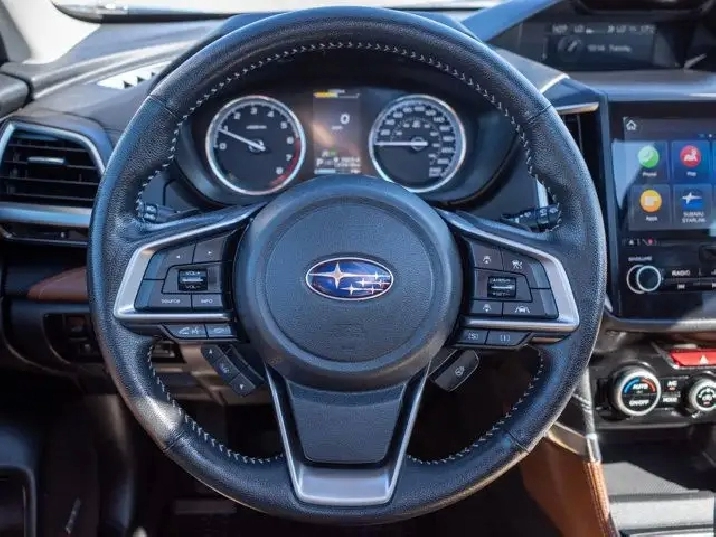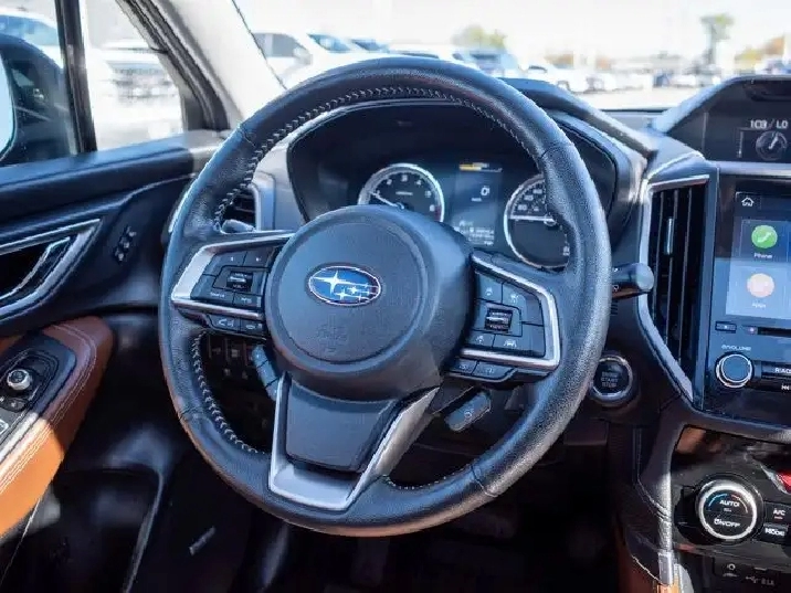 Inside, the Premier trim offers leather-trimmed seats, a power-adjustable driver's seat, dual-zone automatic climate control, and an 8-inch touchscreen with Apple CarPlay and Android Auto. Standard safety features include Subaru's EyeSight Driver Assist Technology with adaptive cruise control, pre-collision braking, and lane departure warning, making it a versatile and safe choice for daily driving.