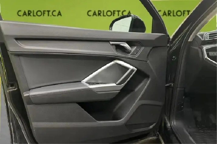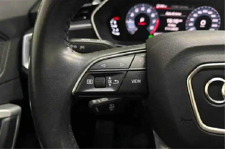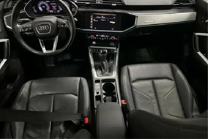 Our Q3's trim level is Komfort 45 TFSI quattro. This Q3 Komfort packs a big punch in a desirable package with a dual row sunroof, heated leather bucket seats, a heated leather steering wheel, proximity key with push button start, remote cargo access, voice activated LCD touch screen infotainment with Audi smartphone interface, and a rear backup camera. This small crossover does not fall short on style with a dual tailpipe, aluminum alloy wheels, a chrome grille, automatic LED lighting, fog lamps, and perimeter lights.