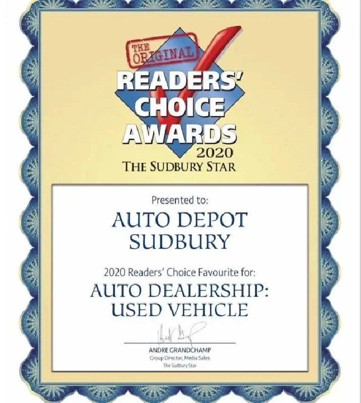Locally owned business for over 32 years and voted Sudbury’s favourite dealership. Auto Depot showcases a large variety of certified premium pre-owned vehicles. Our cars, trucks, and SUVs have all been hand selected by our purchasing team with every type of financial situation in mind. Here at Auto Depot, we make every effort to ensure that our vehicle will exceed the expectation of the most demanding buyers. Each vehicle is hand-selected by our expert purchasing staff, and then handed over to our reconditioning team to bring the car as close to new as possible. Our goal is to offer the most exceptional premium pre-owned vehicles in the marketplace at unbeatable prices!While browsing take advantage of our HD 360° photography which features all the details and options in our vehicles. * Direct access to CARFAX**Complimentary oil change** Full tank of fuel**360° photography**Voted Sudbury’s favourite dealership for over 15 years* *Safety Standards Certificate provided with each vehicle* *All vehicles’ certifications from Sudbury’s most trusted Automotive repair shop*Financing available for ALL credit situationsPlease, don’t let your past drive your futureDon't let this one slip away, always remember the car you are looking at today & thinking about buying tomorrow is the same car that someone else looked at yesterday and is buying today! 705 673 6079www.autodepotsudbury.ca933 Kingsway Sudbury ON, P3B 2E4