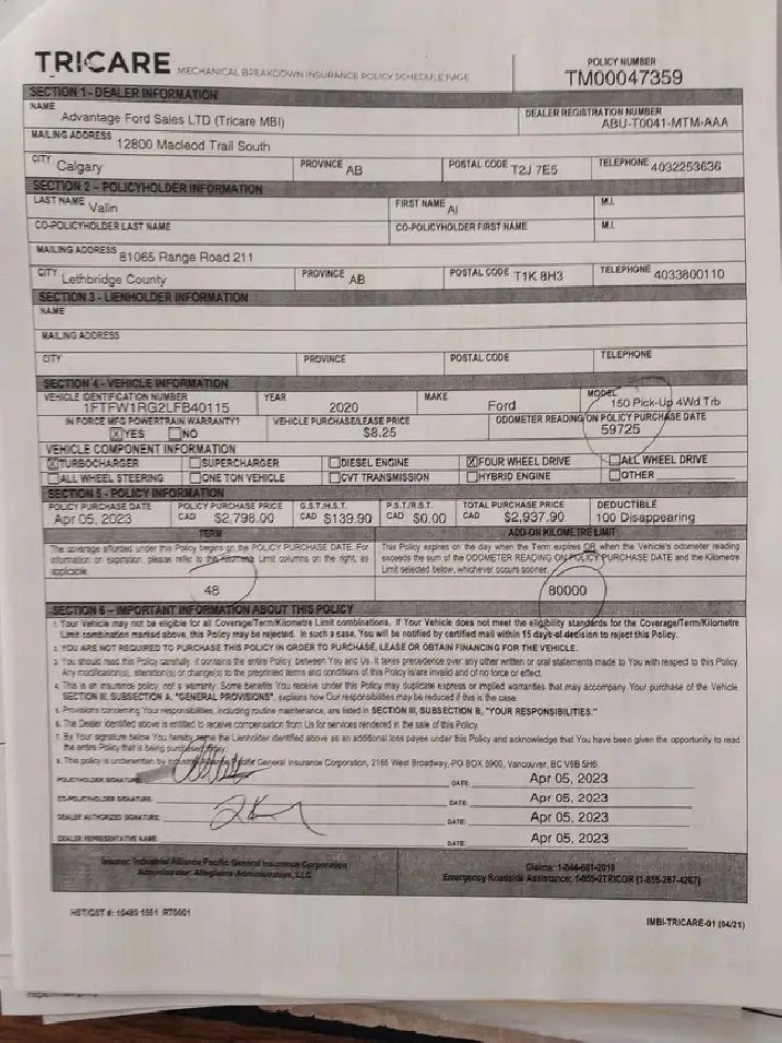 Extended warranty purchased through until April 5,2027 (139975 kms).