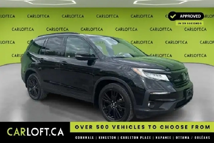 Our Pilot's trim level is Black Edition. This Black Edition Pilot adds a lot of beautiful and aggressive blacked out styling to the best interior features like second row captains chairs, panoramic moonroof, cooled front seats, How Much Farther? app, rear entertainment with video playback and HDMI inputs, Wi-Fi hotspot, premium audio, wireless charging, hands free power liftgate, CabinTalk PA system, ambient interior lighting, 115V power outlet, rain sensing wipers, and power folding side mirrors. The interior is also loaded navigation, leather heated seats, heated steering wheel, memory driver seat, proximity keyless entry, remote start, Apple CarPlay, Android Auto, SiriusXM, HD Radio, Bluetooth, audio display, and Siri EyesFree. Driver assistance technology is here in truckloads with collision mitigation, lane keep assist, blind spot display, adaptive cruise, a 7 inch driver information interface, and automatic highbeams. This vehicle has been upgraded with the following features: Cooled Seats, Leather Seats, Navigation, Sunroof, Rear Video Entertainment, Memory Seats, Hands Free Liftgate.