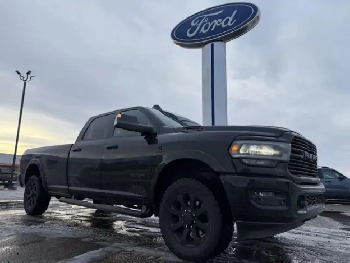 *FRESH ARRIVAL! MORE PHOTOS TO COME!* This Beautiful 2020 RAM 3500 Laramie 8ft Long Box 6.7L HO Cummins AISIN Trans Crew Cab Is LOADED! Features Include Leather, NAV, 40/20/40 Front Bench Seat, MoonRoof, New Toyo AT3 Tires, Husky Liners, 5th Wheel Prep Pkg, Solid Fold Box Cover, Spray In Bed Liner, Heated/Cooled Seats, Heated Steering Wheel, Remote Start, 12" Touchscreen, LED Bed Lighting, Remote Release Tailgate, 17 Speaker Sound System, Power Adj Pedals, Blind Spot System, Surround View Camera System, A/C, Cruise, Tilt, Power Windows, Locks, Mirrors, & MORE!