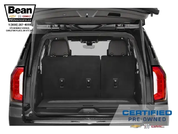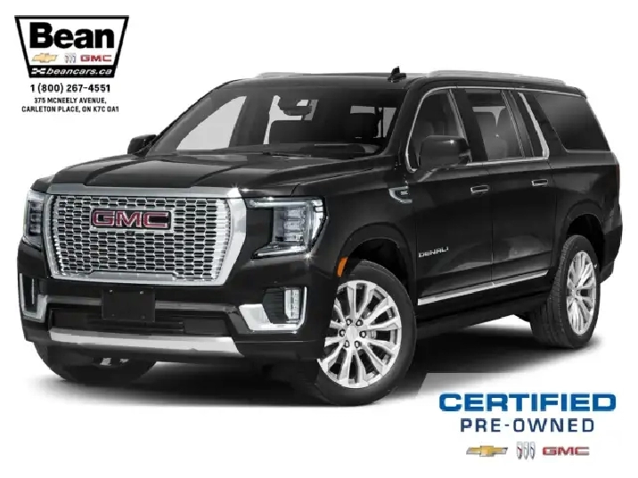This GMC Yukon XL Denali is a one owner trade that comes with a clean Carfax and is nicely loaded to keep you and your passengers comfortable! It has the popular and powerful 6.2L V8 engine, dual pane power sunroof, heated and ventilated front leather seats, heated leather wrapped steering wheel, heated second row bucket seats, wireless charging, head up display, Bose premium speaker system, adaptive cruise control, power retractable assist steps as well as magnetic ride control suspension package and 22 gloss black alloy wheels! Arrive in style and comfort in this GMC Yukon XL Denali!