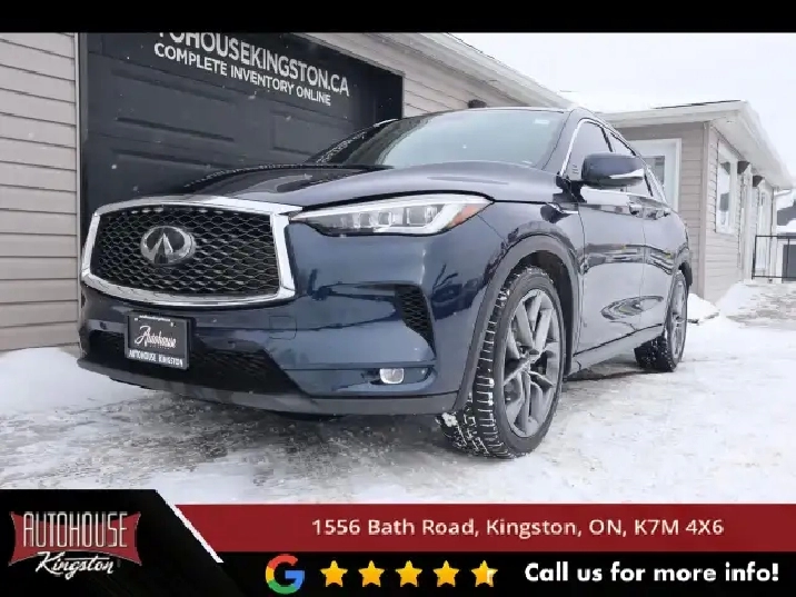This 2021 Infiniti QX50 Sensory AWD is powered by a 2.0 L VC-Turbo 4-cylinder engine paired with a continuously variable transmission CVT and Intelligent All-Wheel Drive. The Sensory trim adds premium luxury and technology including heated and ventilated leather-appointed front seats, heated rear seats, dual-zone automatic climate control with rear vents, heated leather-wrapped steering wheel, and power-adjustable front seats with memory settings. Panoramic moonroof, roof rails, hands-free power liftgate, a dual touchscreen infotainment system with Apple CarPlay and Android Auto, Bluetooth connectivity, USB ports, Bose premium audio system, navigation, rear-view camera, and proximity keyless entry with push-button start. For safety and driver assist, it includes Intelligent Cruise Control, Forward Emergency Braking with Pedestrian Detection, Blind Spot Warning with Intervention, Rear Cross Traffic Alert, Lane Departure Warning and Prevention, Traffic Sign Recognition, Around View® Monitor with Moving Object Detection. The Sensory package also adds premium interior accents, ambient lighting, and enhanced comfort/utility features throughout.**PLEASE CALL OR TEXT TO BOOK YOUR TEST DRIVE! THIS WILL ALLOW US TO HAVE THE VEHICLE READY BEFORE YOU ARRIVE. THANK YOU!**WE FINANCE!! Click through to AUTOHOUSEKINGSTON.CA for a quick and secure credit application! Fees Associate with vehicle Purchase at Autohouse • All vehicles sold at Autohouse Kingston are subject to a $699 Administration Fee. In order to comply with Ontario Legislation this fee will get a different title depending on the deal structure. • On Financed Deals: We must call this a “Finance Fee”. It will be a separate line item on the documentation. This fee has already been included with any payment quote advertised by Autohouse Kingston. • On Cash Deals: We must call this a “Cash Purchase Surcharge”. It will be added to the selling price of the vehicle on the documentation. OMVIC FEE Ontario Motor Vehicle Industry Council charges each person in Ontario $12.50 when they make a vehicle purchase. This is added to a compensation fund with OMVIC. Should a motor vehicle dealer act in bad faith or outside of legislative guidelines OMVIC will seek action on the client’s behalf. Licensing Fee Autohouse Kingston will facilitate the registration of your new vehicle with Service Ontario. We simply ask to be reimbursed for the cost of registration. This is a common practice when purchasing a vehicle. $32 to attach your existing license plates to your new vehicle. $59 to purchase and register new license plates to your new vehicle. Heavy-duty and Commercial Vehicles have varying costs of registration depending on weight and usage. Autohouse Kingston Inclusions Explained Safety Inspection Autohouse Kingston will perform an Ontario Safety Standards Inspection on each vehicle at time of sale. Any repairs required to meet Ontario Safety Standards will be done at the expense of Autohouse Kingston and are included in our advertised price. Oil Change Autohouse Kingston will change the engine oil and filter on each vehicle at the time of sale. Keys Autohouse Kingston guarantees at least 1 operational key with each vehicle. In the case that a client would like additional keys they will be made available at our industry wholesale pricing. Vehicle History CarFax Vehicle History Reports are readily available on our website with every vehicle listing. If for some reason this report does now show, just ask. We are happy to provide clients with everything required for them to make an informed decision. Fuel & Detail Each vehicle will be delivered to its new owner with at least half a tank of fuel and will be fully detailed prior to the client taking delivery. Autohouse Kingston is a locally-owned family business that has served Kingston and the surrounding area for more than 30 years. We operate with transparency and provide family-like service to all our clients. At Autohouse Kingston we work with more than 20 lenders to offer you the best possible financing options. Please ask how you can add a warranty and vehicle accessories to your monthly payment.We are located at 1556 Bath Rd, just east of Gardiners Rd, in Kingston. Come in for a test drive and speak to our sales staff, who will look after all your automotive needs with a friendly, low-pressure approach. Get approved and drive away in your new ride today!Office - 613-634-3262Kyle Hollett Sales - Extension 104 - Cell - 613-985-5953; [email protected] Amirullah Finance Manager - Extension 103 - Cell - 613-360-2780; [email protected]