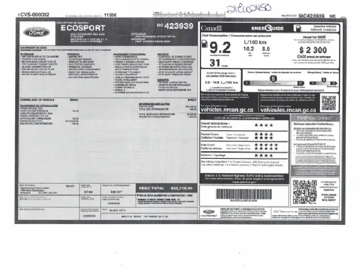 *** TEXTEZ-NOUS AU 819-801-5001 (TROIS-RIVIÈRES) 819-805-2929 (SHAWINIGAN) POUR UNE RÉPONSE RAPIDE *** Le Ford EcoSport SES est une version sportive et dynamique du petit SUV compact d'entrée de gamme, offrant un design audacieux, des performances améliorées et une technologie moderne. Conçu pour les conducteurs actifs qui recherchent à la fois un véhicule pratique et un peu plus de sensations, l'EcoSport SES se distingue par son apparence robuste, son moteur puissant et ses équipements spécifiques à cette version. Caractéristiques clés :Moteur 2.0 L Ti-VCT avec 166 chevaux/ Transmission intégrale intelligente (AWD) de série/ Suspension sport calibrée SES pour une conduite plus dynamique/ Jantes en alliage noir de 17 pouces exclusives/ Éléments de design noirs : toit, calandre, rétroviseurs et garnitures extérieures/ Système SYNC® 3 avec écran tactile de 8 pouces, Apple CarPlay et Android Auto/ Navigation intégrée et commande vocale/ Toit ouvrant électrique, sièges chauffants, volant gainé de cuir chauffant/ Caméra de recul, capteurs de stationnement arrière, démarrage sans clé avec accès intelligent AWD Toit Ouvrant Cuir/Tissu Mags *** 650 véhicules disponibles sur place inspectés et garantis *** le meilleur choix au Québec *** Osez comparer chez Gervais Auto! Une entreprise familiale depuis plus de 50 ans. Inventaire complet sur le www.gervais-auto.com. Financement 1ère, 2e et 3e chance aux meilleurs taux disponibles sur place! Appelez-nous au 819-538 (auto) Shawinigan ou au 819-697 (auto) Trois-Rivières pour plus d'informations ! *** JAMAIS ACCIDENTÉ *** 17 SEPTEMBRE 2026 OU 100 000 KM : GARANTIE CONSTRUCTEUR ****** GARANTIE GERVAIS : 6 MOIS OU 10 000 KM ***** GARANTIE PROLONGÉE DISPONIBLE ***