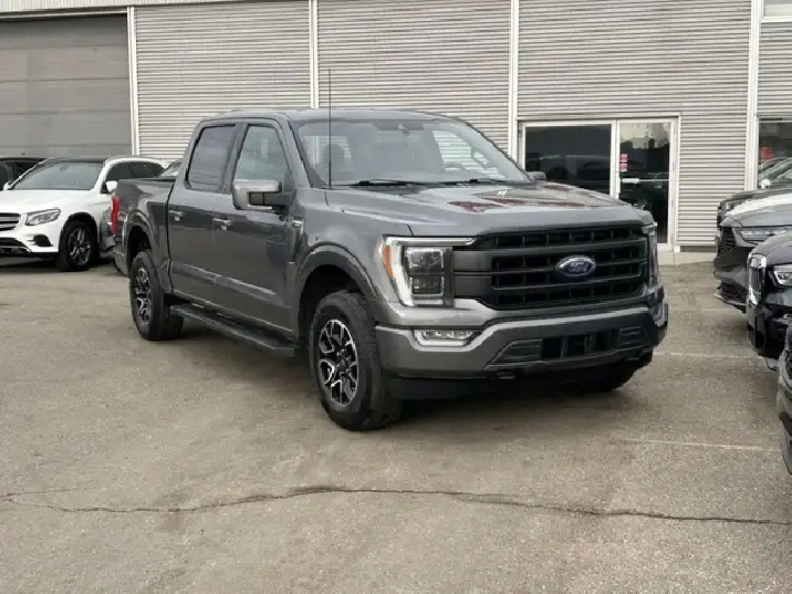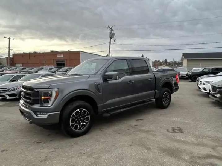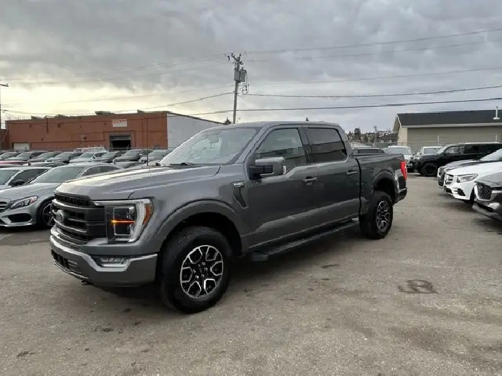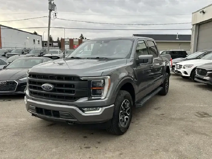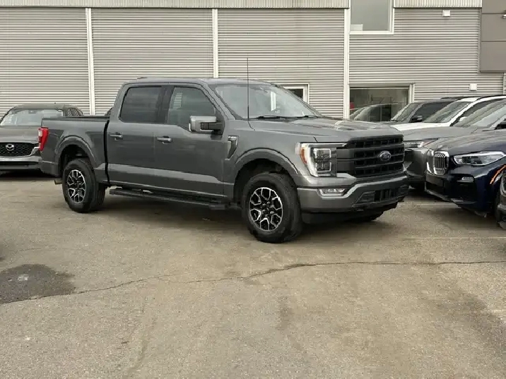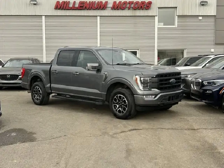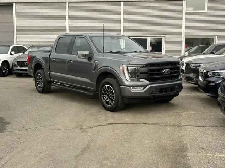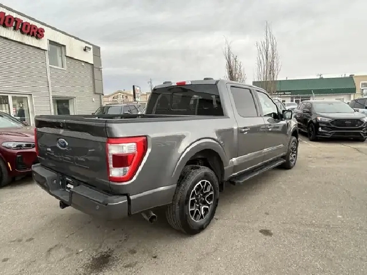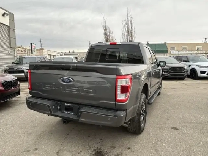 2021 FORD F-150 LARIAT SUPERCREW 4X4, 2.7L ECOBOOST AUTOMATIC, GREY EXTERIOR WITH BLACK LEATHER INTERIOR, EQUIPPED WITH NAVIGATION, BACK UP CAMERA, KEYLESS ENTRY WITH REMOTE START, HEATED AND COOLED FRONT POWER SEATS, REAR HEATED SEATS, HEATED STEERING WHEEL, DUAL ZONE CLIMATE CONTROL WITH A/C, POWER LOCKS/MIRRORS AND WINDOWS, REAR POWER SLIDING WINDOW, TRACTION AND CRUISE CONTROL, TELESCOPIC STEERING, PREMIUM BANG AND OLUFSEN AUDIO WITH SXM, BLUETOOTH, SYNC, APPLE CARPLAY, ANDROID AUTO, USB INPUT, 18in. ALLOY WHEELS, AUTO STOP-START, POWER PEDAL CONTROL, PARK ASSIST, RUNNING BOARDS, FOG LAMPS, TOW PKG, BLOCK HEATER, PRIVACY GLASS AND MORE. CARFAX AVAILABLE UPON REQUEST. CONTACT US DIRECTLY @ 403-735-6050 TO BOOK A VIEWING OR FOR ANY FURTHER DETAILS. STOCK # E50560