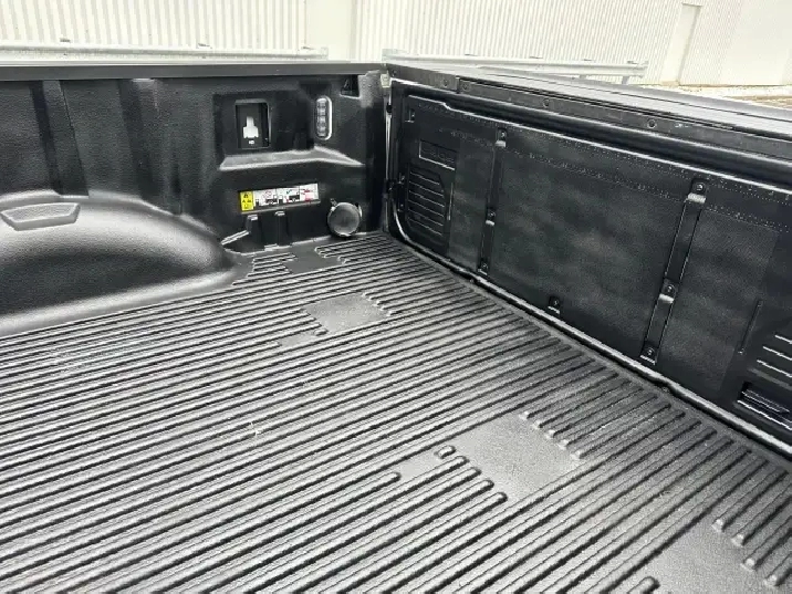 Additional premium features include 18" Chrome Alloy Wheels, Chrome Running Boards, Heavy-Duty Shocks, 400W Power Outlet, Pickup Box LED Lighting, Tow Hooks, Cruise Control, Tilt & Telescopic Steering, Power Windows/Locks/Mirrors, AM/FM/CD/MP3/XM Sirius Premium Audio, ABS Braking, Traction Control, Roll Stability Control, and full SRS Airbag Safety System (dual front/side/curtain).