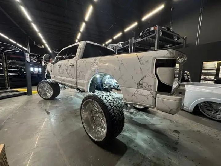 SEMA Build | Marble Vinyl Wrap | 15in Stryker Lift | 30in TIS Forged Wheels | King Shocks | Deleted | Rock Lights | Starlight Headliner | Paint Matched Trim