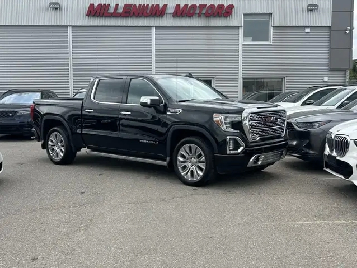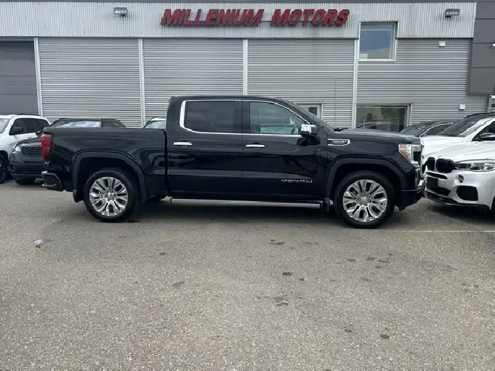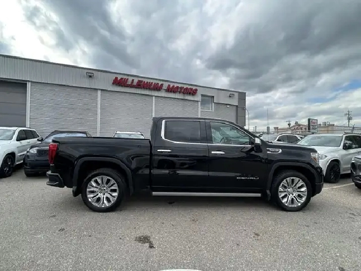 HAIL SALE!!! 2021 GMC SIERRA K1500 DENALI CREW CAB 4WD, 6.2L V8 AUTOMATIC. BLACK EXTERIOR WITH FULL BLACK LEATHER INTERIOR, EQUIPPED WITH KEYLESS ENTRY FACTORY REMOTE STARTER, NAVIGATION, HEADS UP DISPLAY, BACK UP CAMERA, POWER SUNROOF, POWER LOCKS/FOLDING MIRRORS AND WINDOWS, POWER TAILGATE, HEATED AND COOLED FRONT POWER MEMORY SEATS, DUAL CLIMATE CONTROL WITH A/C, HEATED STEERING WHEEL, PREMIUM BOSE AUDIO WITH SXM RADIO, BLUETOOTH, APPLE CARPLAY, ANDROID AUTO, WIRELESS CHARGE PAD, USB AND AUX INPUT, 22in. ALLOY WHEELS, DRIVER ALERT PKG - LANE DEPARTURE - FORWARD COLLISION ALERT. PARKING SENSORS, TRACTION AND CRUISE CONTROL, TELESCOPIC STEERING, FOG LAMPS, PRIVACY GLASSS, POWER RUNNING BOARDS, AND MORE. VEHICLE HAS HAIL DAMAGE. CARFAX AVAILABLE UPON REQUEST. CONTACT US DIRECTLY @ 403-735-6050 TO BOOK YOUR TEST DRIVE OR FOR ANY FURTHER DETAILS. STOCK # 474951