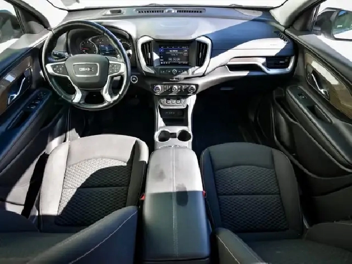 This 2021 GMC Terrain is for sale today. This SUV has 59,510 kms. It's _white_ in colour and is completely accident free based on the CARFAX Report . It has an automatic transmission and is powered by a 170HP 1.5L 4 Cylinder Engine. It may have some remaining factory warranty, please check with dealer for details.