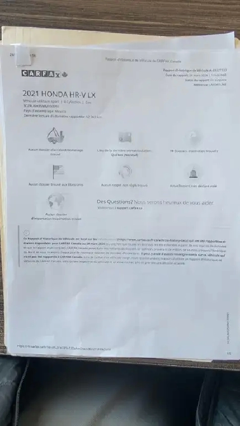 Honda HR-V LX AWD 2021 – 52 961 KM – 23 995 $ taxes