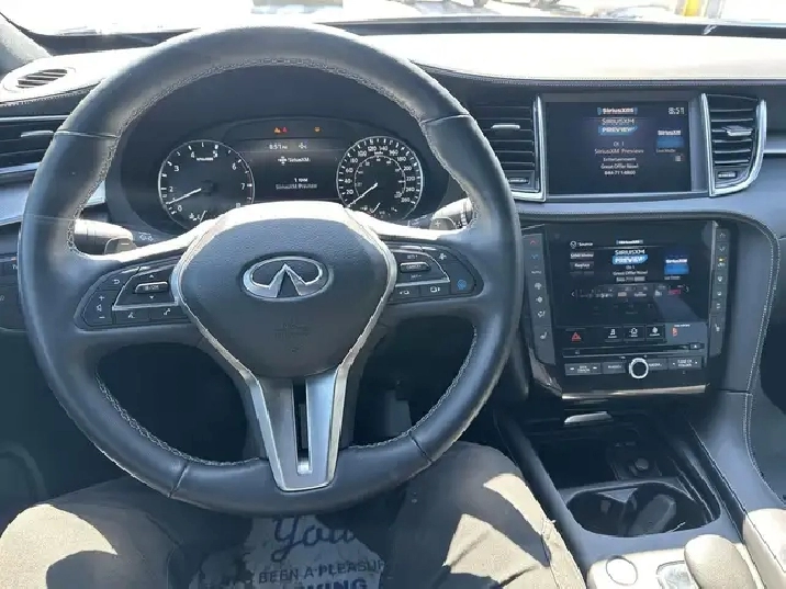 • Radio: INFINITI InTouch Dual Display System -inc: 6 speakers, voice recognition for navigation functions, including one-shot voice destination entry, upper 8" and lower 7" HD touch screens, Bluetooth hands-free phone system, Apple CarPlay, Android Auto, HD radio technology, SiriusXM radio w/advanced audio features and 90-day complimentary trial, Siri Eyes Free, Wi-Fi hotspot, INFINITI voice recognition, INFINITI controller, AM/FM audio system w/single disc in dash CD player, 4 USBs (2 IP lower, 1 front centre console, 1 rear of front centre console), Bluetooth streaming audio and active noise cancellation