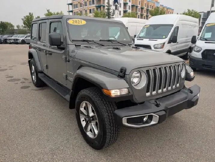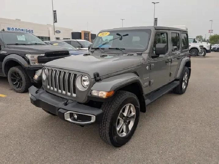 WAS: $45990 NOW: $39990 plus taxes and licensing feesLow Mileage, Heavy Duty Suspension, 4G Wi-Fi, Android Auto, Apple CarPlay, Navigation! This 2021 Jeep Wrangler is for sale today. No matter where your next adventure takes you, this Jeep Wrangler is ready for the challenge. With advanced traction and handling capability, sophisticated safety features and ample ground clearance, the Wrangler is designed to climb up and crawl over the toughest terrain. Inside the cabin of this Wrangler offers supportive seats and comes loaded with the technology you expect while staying loyal to the style and design you’ve come to know and love.This low mileage SUV has just 26,076 kms. Stock number S-2033A is ,grey in colour and is completely accident free based on the CARFAX Report . It has a 8 speed automatic transmission and is powered by a 270HP 2.0L 4 Cylinder Engine. Our Wrangler's trim level is Sahara Unlimited. This Sahara is as rugged as its namesake lands with aluminum wheels, heavy duty shocks, heavy duty suspension, side steps, chrome exterior accents, Sahara logo on seats, Black Freedom Top hardtop, leather steering wheel, power windows and locks, remote keyless entry, voice activated air conditioning, navigation, off road information pages, and wi-fi. It also comes with Uconnect4, voice activation, Android Auto, Apple CarPlay, skid plates, tow hooks, stylish wheels, fog lamps, Dana axles, Command Trac shift on the fly 4x4 system, Trail Rated badge, and a rear view camera. This vehicle has been upgraded with the following features: Heavy Duty Suspension, 4g Wi-fi, Android Auto, Apple Carplay, Navigation, Side Steps, Aluminum Wheels. To view the original window sticker for this vehicle view this http://www.chrysler.com/hostd/windowsticker/getWindowStickerPdf.do?vin=1C4HJXEN2MW818524. Every pre-owned vehicle from Woodridge Ford is fully safety certified and comes with a full inspection, a free CARFAX vehicle history report, 3 months of Sirius XM radio on equipped vehicles , plus Mechanical Fitness Assessment. We also provide additional pre-owned vehicle offers such as Tricare extended warranties, extended pre-owned Ford warranties, and a variety of aftermarket add-ons. Need financing assistance? We can help with that too. Stop in today or visit WoodridgeFord.com. Woodridge Ford is an AMVIC licensed automotive retail dealer. Please see CARFAX Report available through Woodridge Ford for full vehicle history. Text us at: 1-587-417-2711 o~o