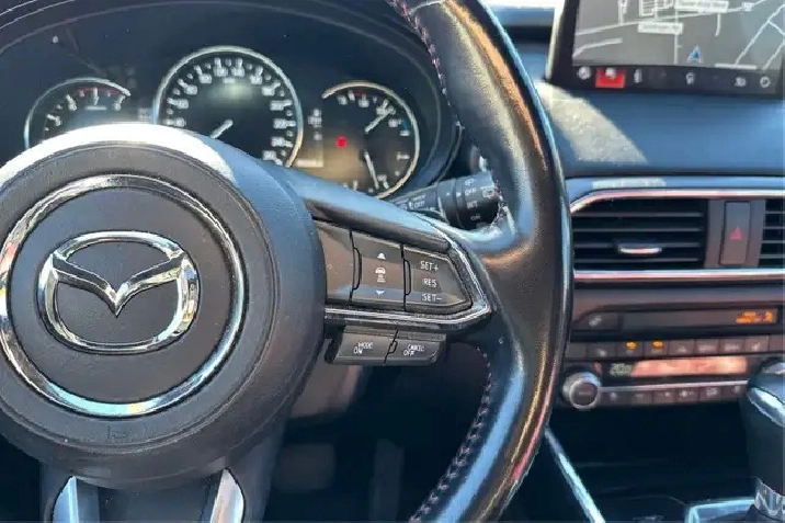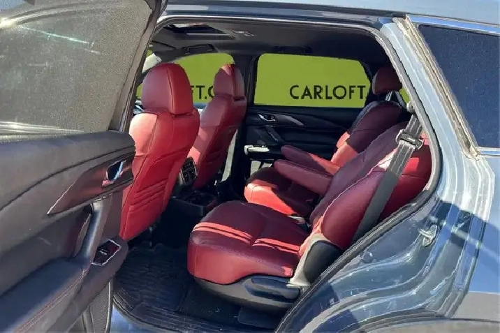 Our CX-9's trim level is GT AWD. Upgrading to this GT is a wise choice as it comes with premium features like a larger touchscreen and navigation, Apple CarPlay and Android Auto, a Bose premium audio system, lane keep assist and lane departure warning, adaptive cruise control, head up display, power liftgate, heated steering wheel, a proximity key and a power sunroof. You will also get heated and cooled leather seats, stylish aluminum wheels, a 360 degree camera, tri zone automatic climate control, LED lighting, reclining second row seats and power front seats. Additional safety features include forward obstruction warning, pedestrian detection, full range active braking assist, high beam control plus advanced blind spot monitoring.