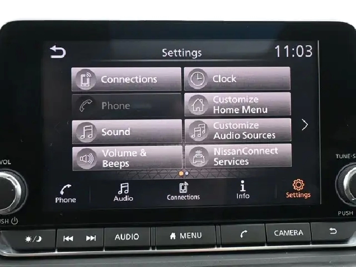 - Radio: AM/FM Audio System w/6 Speakers -inc: 7" centre meter colour display, NissanConnect featuring Apple CarPlay and Android Auto, A-IVI 8" colour display w/multi-touch control, 2 USBs, Bluetooth hands-free phone system and streaming audio, handsfree text messaging assistant, SiriusXM satellite radio, Siri Eyes free and Wi-Fi hotspot
