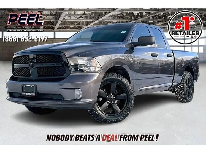 2021 Ram 1500 Classic Express Quad Cab 4X4 | 3.6L V6 | Granite Crystal Metallic | Night Edition | Cloth Front 40/20/40 Bench Seat | Uconnect 8.4 Touchscreen Display | Apple CarPlay & Android Auto | 20x8 Semi Gloss Black Aluminum Wheels | Spray-in Bed Liner | Class IV Hitch Receiver | Roll-up Tonneau Cover | Upgraded Goodyear Wrangler Duratrac RT Tires