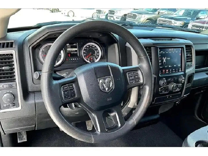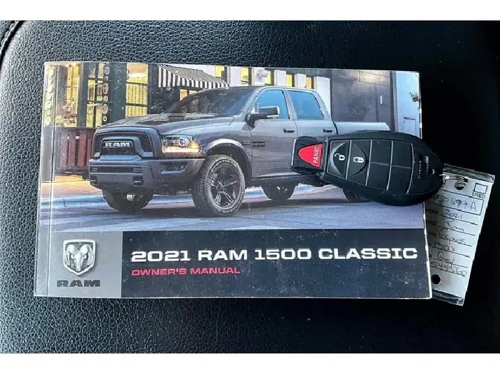 Sharp, practical, and ready to work, this 2021 Ram 1500 Classic Express Night Edition sets you up with a versatile 40/20/40 cloth front bench that seats six or flips for storage, generous Quad Cab space, and an easy to clean cabin that keeps long days comfortable. Uconnect on the 8.4 inch touchscreen pairs with Apple CarPlay and Android Auto so your maps, calls, and playlists stay simple and distraction free. Outside, Granite Crystal Metallic looks tough against 20x8 semi gloss black wheels, and real utility follows with upgraded Goodyear Wrangler Duratrac RT tires for confident all weather grip, 4x4 traction, a spray in bed liner, a roll up tonneau to keep cargo secure, and a Class IV hitch for weekend towing behind the efficient 3.6L V6. With One Owner Clean Carfax history, this Night Edition delivers style, capability, and smart value.