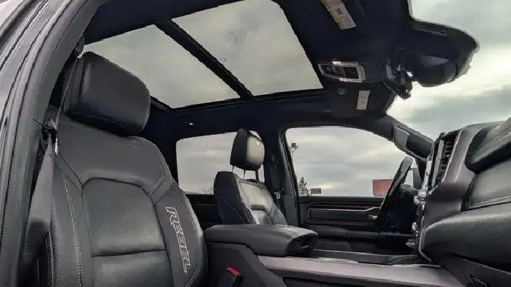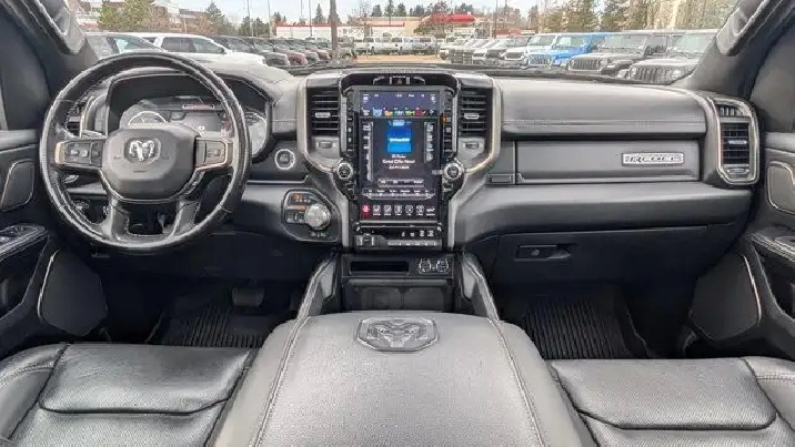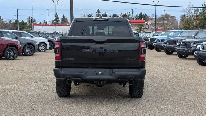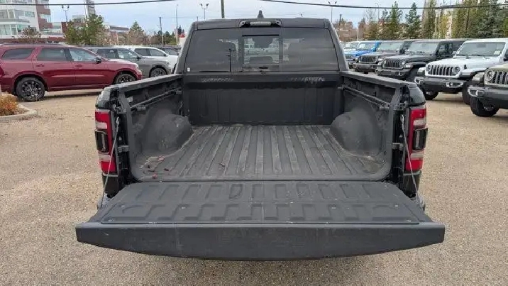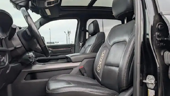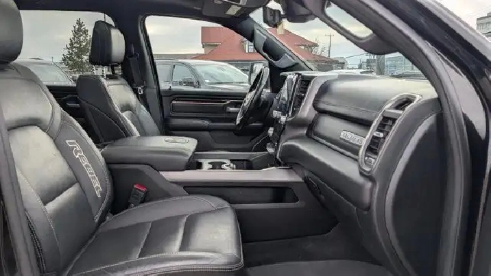 - DIAMOND BLACK CRYSTAL PEARLCOAT,REMOTE START SYSTEM,MONOTONE PAINT,COLD WEATHER GROUP -inc: Winter Front Grille Cover,REAR WHEELHOUSE LINERS,BED UTILITY GROUP -inc: 4 Adjustable Cargo Tie-Down Hooks LED Bed Lighting Deployable Bed Step,NIGHT EDITION -inc: Black Front Bumper w/Black Plate Wheels: 18 x 8.0 Gloss Black Grille Moustache w/Black Outline Black RAM Grille Badge,PARK-SENSE FRONT & REAR PARK ASSIST,QUICK ORDER PACKAGE 28W REBEL -inc: Engine: 3.0L V6 Turbocharged Diesel Transmission: 8-Speed Automatic (DFV),POWER DUAL-PANE PANORAMIC SUNROOF -inc: LED Dome/Reading Lamp LED Dual Dome Reading Lamps Overhead LED Lamps,GVWR: 3 265 KGS (7 200 LBS),LEVEL 2 EQUIPMENT GROUP -inc: Remote Start System Rear Window Defroster Rain-Sensing Windshield Wipers Park-Sense Front & Rear Park Assist Power Adjustable Pedals Rear Dome Lamp w/On/Off Switch Body-Colour Door Handles A/C w/Dual-Zone Automatic Temperature Control 115V Rear Auxiliary Power Outlet Media Hub w/2 USB Charging Ports Rear Underseat Compartment Storage Remote Proximity Keyless Entry Universal Garage Door Opener Front Heated Seats Heated Steering Wheel Door Trim Panel Foam Bottle Insert Security Alarm Sun Visors w/Illuminated Vanity Mirrors,DIAMOND BLACK CRYSTAL PEARL,TRANSMISSION: 8-SPEED AUTOMATIC (DFV),ENGINE: 3.0L V6 TURBOCHARGED DIESEL -inc: Active Lower Grille Shutters 800-Amp Maintenance-Free Battery Common Rail Diesel Badge Heavy-Duty Engine Cooling 250 Amp Alternator GVWR: 3 265 kgs (7 200 lbs),WHEELS: 18 X 8.0 GLOSS BLACK,BLACK LUXURY LEATHER-FACED FRONT BUCKET SEATS -inc: Front Heated Seats Heated Steering Wheel Power 4-Way Front Passenger Lumbar Adjust Power 8-Way Adjustable Front Seats Full-Length Upgraded Floor Console,COMFORT & CONVENIENCE GROUP -inc: Wireless Charging Pad Power 4-Way Front Passenger Lumbar Adjust Remote Tailgate Release Exterior Mirrors w/Memory Settings Second-Row Heated Seats Driver Seat w/Memory Setting Power 8-Way Adjustable Front Seats,TRAILER BRAKE CONTROL,TECHNOLOGY GROUP -inc: Heads Up Display LED CHMSL Lamp Digital Rearview Mirror w/Autodim,LEATHER & SOUND GROUP -inc: harmon/kardon 19-Speaker Audio Radio: Uconnect 4C Nav w/12 Display Google Android Auto Off-Road Info Pages SiriusXM Traffic USB Mobile Projection Disassociated Touchscreen Display HD Radio For Details Visit DriveUconnect.ca Integrated Centre Stack Radio 1-Year SiriusXM Guardian Subscription 12 Touchscreen 5-Year SiriusXM Travel Link Subscription GPS Navigation 5-Year SiriusXM Traffic Subscription SiriusXM Travel Link 4G LTE Wi-Fi Hot Spot SiriusXM w/360L On-Demand Content Apple CarPlay Capable LED Footwell Lighting,RADIO: UCONNECT 4C NAV W/12 DISPLAY -inc: Google Android Auto Off-Road Info Pages SiriusXM Traffic USB Mobile Projection Disassociated Touchscreen Display HD Radio For Details Visit DriveUconnect.ca Integrated Centre Stack Radio 1-Year SiriusXM Guardian Subscription 12 Touchscreen 5-Year SiriusXM Travel Link Subscription GPS Navigation 5-Year SiriusXM Traffic Subscription SiriusXM Travel Link 4G LTE Wi-Fi Hot Spot SiriusXM w/360L On-Demand Content Apple CarPlay Capable LED Footwell Lighting,124-LITRE (27.4-GALLON) FUEL TANK,Locking/Limited Slip Differential,Conventional Spare Tire,ABS,Aluminum Wheels,Tow Hitch,Tires - Front All-Terrain,Tires - Rear All-Terrain,Power Steering,Brake Assist,Four Wheel Drive,4-Wheel Disc Brakes,Daytime Running Lights,Heated Mirrors,Tow Hooks,Power Door Locks,Steering Wheel Audio Controls,Integrated Turn Signal Mirrors,Automatic Headlights,Privacy Glass,Power Mirror(s),Intermittent Wipers,Satellite Radio,AM/FM Stereo,Auxiliary Audio Input,LED Headlights,Requires Subscription,Variable Speed Intermittent Wipers,MP3 Capability,Bluetooth Connection,Power Folding Mirrors,Fog Lamps,Rear Head Air Bag,Child Safety Locks,Traction Control,Cloth Seats,Keyless Entry,Passenger Vanity Mirror,Trip Computer,Front Head Air Bag,A/C,Immobilizer,Power Driver Seat,Bluetooth Connection,Back-Up Camera,Adjustable Steering Wheel,Driver Air Bag,Power Door Locks,Trip Computer,Tire Pressure Monitor,Floor Mats,Passenger Air Bag,Bucket Seats,Pass-Through Rear Seat,Power Windows,Rear Bench Seat,Front Collision Mitigation,Passenger Illuminated Visor Mirror,Keyless Start,Power Door Locks,Auto-Dimming Rearview Mirror,Front Side Air Bag,Passenger Air Bag Sensor,Vinyl Seats,Traction Control,Power Driver Seat,Leather Steering Wheel,Stability Control,Power Windows,Cruise Control,Driver Adjustable Lumbar