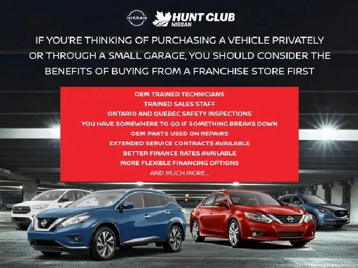 Come visit our Hunt Club Nissan team, you can find us at 275 W Hunt Club Rd Nepean, ON K2E 1A6, or call us at (613) 521-6262 to book a test drive today!