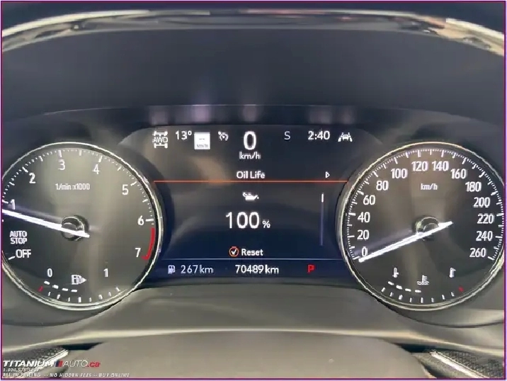 - Driver Information Centre, enhanced, 8" diagonal multi-colour configurable display includes speedometer, trip odometer, fuel level, coolant temperature, oil life monitor, air filter life and compass