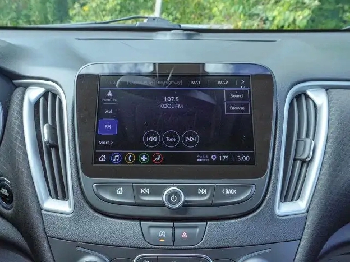 - Audio system, Chevrolet Infotainment 3 system, 8" diagonal colour touchscreen, AM/FM stereo. Additional features for compatible phones include: Bluetooth audio streaming for 2 active devices, voice command pass-through to phone, Apple CarPlay and Android Auto capable.