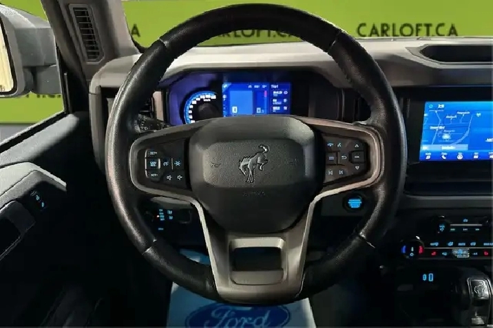 Our Bronco's trim level is Big Bend. Adding some creature comforts, this Bronco Big Bend comes well equipped with a leather steering wheel and gear selector, unique aluminum wheels, front fog lights and a handy 12-volt power inverter! This impressive off-road vehicle also includes a terrain management system with G.O.A.T. modes, tons of extra storage, a highly capable suspension and removable doors. Additional features include SYNC 4 with a large touchscreen display, wireless Android Auto and Apple CarPlay, Ford Co-Pilot360 featuring pre-collision assist, forward collision mitigation and a rear view camera, durable cloth seats and a 50-50 split-folding rear bench seat. This vehicle has been upgraded with the following features: Aluminum Wheels, Terrain Management, Leather Steering Wheel, Apple Carplay, Android Auto, Ford Co-pilot360, Pre-collision Assist.