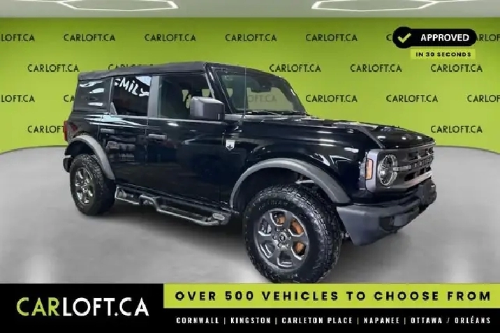 Our Bronco's trim level is Big Bend. Adding some creature comforts, this Bronco Big Bend comes well equipped with a leather steering wheel and gear selector, unique aluminum wheels, front fog lights and a handy 12-volt power inverter! This impressive off-road vehicle also includes a terrain management system with G.O.A.T. modes, tons of extra storage, a highly capable suspension and removable doors. Additional features include SYNC 4 with a large touchscreen display, wireless Android Auto and Apple CarPlay, Ford Co-Pilot360 featuring pre-collision assist, forward collision mitigation and a rear view camera, durable cloth seats and a 50-50 split-folding rear bench seat. This vehicle has been upgraded with the following features: Aluminum Wheels, Terrain Management, Leather Steering Wheel, Apple Carplay, Android Auto, Ford Co-pilot360, Pre-collision Assist.