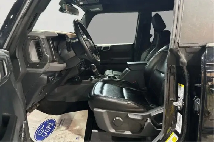 Our Bronco's trim level is Big Bend. Adding some creature comforts, this Bronco Big Bend comes well equipped with a leather steering wheel and gear selector, unique aluminum wheels, front fog lights and a handy 12-volt power inverter! This impressive off-road vehicle also includes a terrain management system with G.O.A.T. modes, tons of extra storage, a highly capable suspension and removable doors. Additional features include SYNC 4 with a large touchscreen display, wireless Android Auto and Apple CarPlay, Ford Co-Pilot360 featuring pre-collision assist, forward collision mitigation and a rear view camera, durable cloth seats and a 50-50 split-folding rear bench seat. This vehicle has been upgraded with the following features: Aluminum Wheels, Terrain Management, Leather Steering Wheel, Apple Carplay, Android Auto, Ford Co-pilot360, Pre-collision Assist.