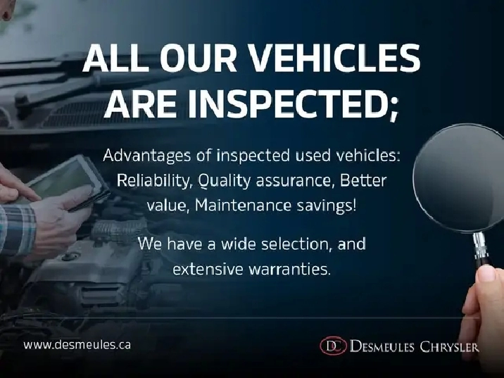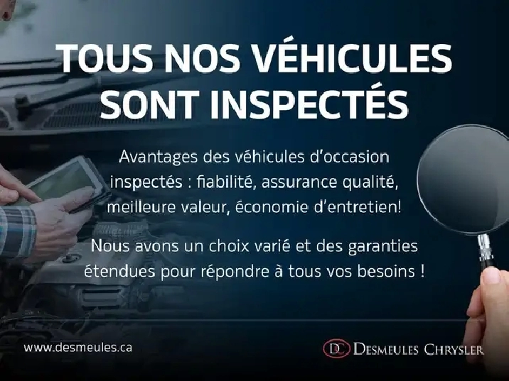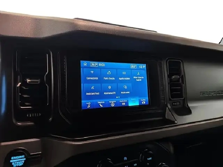 Ford Bronco Big Bend 2022 Esprit d'aventure, robustesse et polyvalence Disponible des maintenant chez Desmeules Chrysler a Laval, le Ford Bronco Big Bend 2022 est concu pour ceux qui veulent sortir des sentiers battus sans renoncer au confort. Avec son style tout-terrain, ses fonctionnalites pratiques et sa robustesse, il incarne la liberte en 4x4. CARACTERISTIQUES PRINCIPALES Moteur 4 cylindres EcoBoost 2,3 L Transmission automatique a 10 vitesses Traction integrale 4x4 avec modes G.O.A.T. (Gravel, Off-road, etc.) ; Capacite de franchissement avec debattement, garde au sol et approche / depart adaptes ; Direction assistee electrique ; Reservoir d'environ 74 L ; Architecture robuste avec chassis en echelle. VERSION BIG BEND EQUIPEMENTS DISTINCTIFS Pare-chocs avant a crochet de remorquage integre ; Rails de toit pour equipements exterieurs ; Sieges avant chauffants ; Volant gaine de cuir avec commandes integrees ; Ecran central tactile avec connectivite Apple CarPlay / Android Auto ; Systeme audio de qualite ; Phares a DEL ; Retroviseurs chauffants ; Protection de soubassement modifiee ; Aides au stationnement avec capteurs arriere. SECURITE ET AIDES A LA CONDUITE Freinage d'urgence autonome avec detection pietons ; Aide au maintien de voie ; Alerte de collision frontale ; Surveillance des angles morts et alerte de circulation transversale arriere ; Camera de recul ; ABS, controle de stabilite et traction ; Airbags frontaux, lateraux et rideaux ; Aide au demarrage en pente ; Systeme de surveillance de la pression des pneus (TPMS). ACHETEZ EN TOUTE CONFIANCE CHEZ DESMEULES CHRYSLER Inspection complete par nos techniciens certifies ; Financement sur place a taux competitifs ; Garantie prolongee disponible ; Echange accepte ; Jusqu'a 90 jours sans paiements (selon admissibilite). Le Ford Bronco Big Bend 2022 est le choix ideal pour les aventuriers qui veulent un vehicule capable en nature sans renoncer au confort. Disponible des maintenant chez Desmeules Chrysler a Laval.