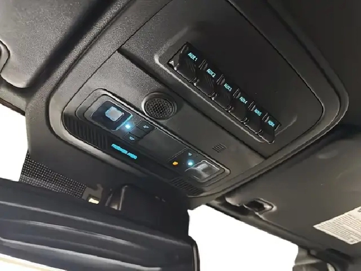 - Console au plancher pleine grandeur avec compartiment de rangement verrouillable, miniconsole au pavillon avec compartiment de rangement et 2 prises de courant de 12 V c.c.