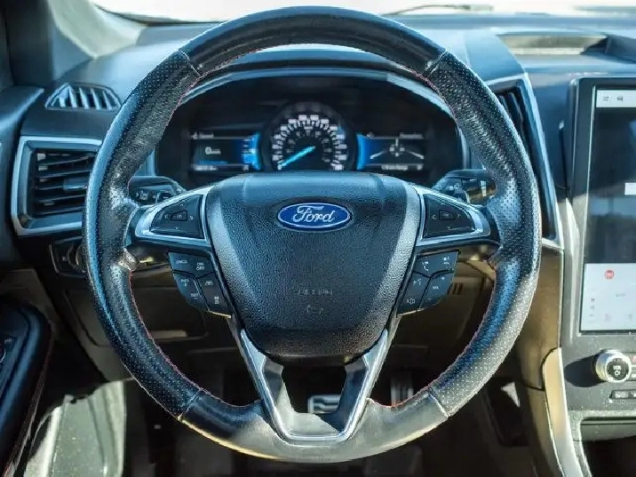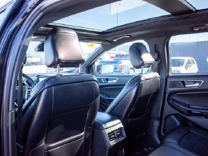 The SEL trim enhances the Edge's comfort and convenience, featuring heated front seats, a power-adjustable driver's seat, dual-zone automatic climate control, and leather-wrapped steering wheel. The cabin seats five comfortably, with generous rear legroom and a versatile 60/40 split-folding rear bench to expand cargo space as needed.