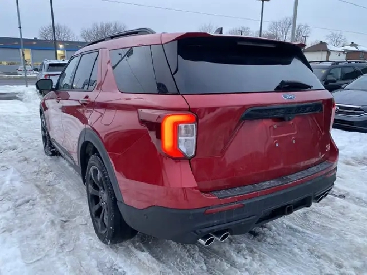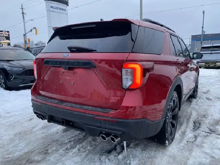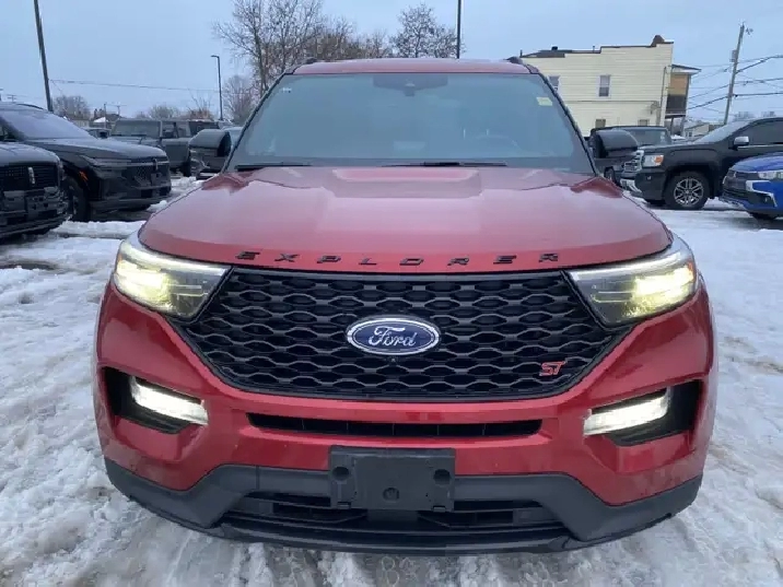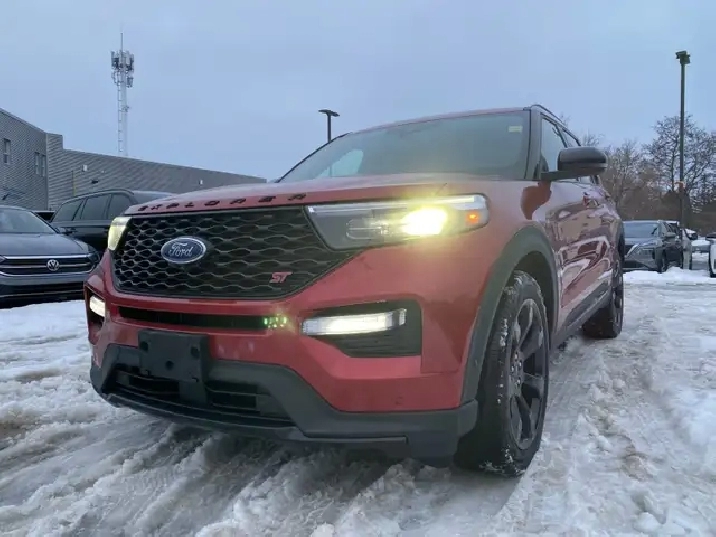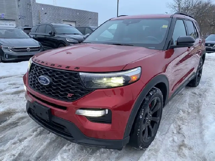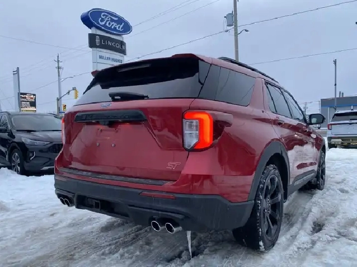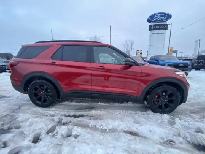 Used 2022 Ford Explorer ST 4WD | Twin-Panel Moonroof | 360 Camera | B&O Audio | Tow Package | Heated/Cooled SeatsIf you want a three-row SUV thats quick, confident, and loaded with premium tech, this 2022 Ford Explorer ST 4WD delivers. Finished in Rapid Red Metallic Tinted Clearcoat with Ebony leather-trimmed seats, its powered by the strong 3.0L EcoBoost V6 paired with a 10-speed automatic transmission and 4WD capability for year-round confidence.ST High Package (Equipment Group 401A) key options:Twin-panel moonroofPremium Technology Package (includes 10.1" touchscreen, 14-speaker audio, and multicontour seats)ST Street Pack (includes performance brakes and 21" aluminum wheels)2nd-row 35/30/35 bench with armrest (3-across second row)Class IV Trailer Tow PackageComfort, tech & safety highlights (from the window sticker):360-degree camera, front & rear park sensors, Active Park Assist 2.0Heated & cooled front seats, heated 2nd-row seats, heated steering wheelB&O audio system, SYNC 3, voice-activated navigation, remote startAdaptive cruise control, BLIS with cross-traffic alert, lane keeping system, Pre-Collision Assist with AEBConvenience features like hands-free liftgate, rain-sensing wipers, auto high beams, and tri-zone climate control Full safety inspection included.Effortless purchase for Quebec buyers: We handle your full SAAQ licensing and registrationpick up your vehicle plated and ready to go, with no SAAQ office visits required.Conveniently Located in Cornwall, Ontario: Miller Hughes Ford is your trusted dealership in Cornwall, serving the surrounding areas from Kingston, Brockville, Ingleside, Prescott, Ottawa, Embrun, Casselman, Hawkesbury and Montreal.