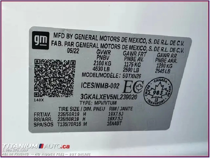 : 3GKALXEV5NL239020 - Engine Size: