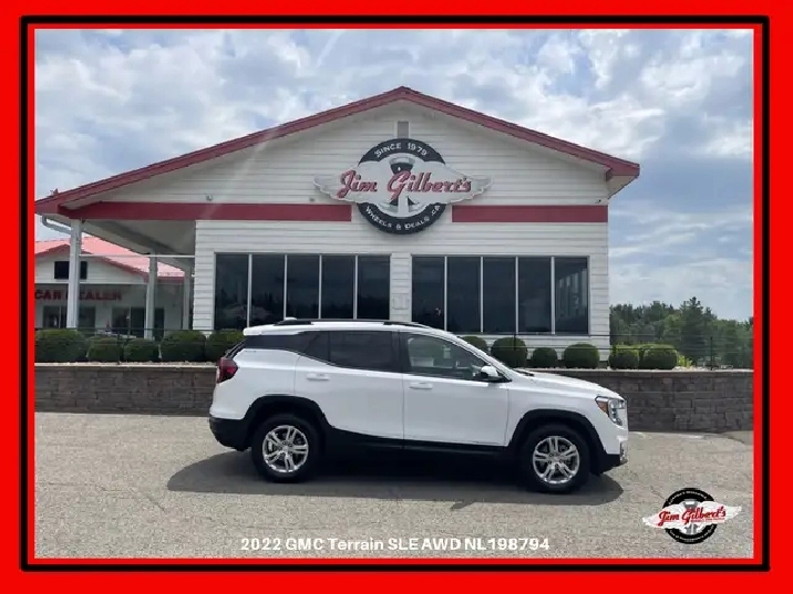 Only $119 weekly all in, Drive it Away/0 DownWelcome to Jim Gilberts Wheels and Deals, Canada’s Huggable Car Dealer! Get ready for an exciting adventure with our 2022 GMC Terrain SLE. This huggable vehicle boasts All Wheel Drive and comes with a FACTORY WARRANTY plus OUR 12 MONTH HUGGABLE GUARANTEE. You can trust in our well maintained and affordable used vehicles, guaranteed to give you the best driving experience. With heated seats, remote start, rear camera, Bluetooth, and alloys, this SUV has everything you need for a smooth journey. Plus, don't forget about our financing options with 0 down payment and trade-in options. Don't wait any longer, call us today at 506-459-6832 to experience the comfort of huggable driving in your very own GMC Terrain SLE!