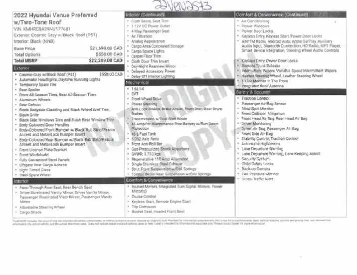 *** TEXTEZ-NOUS AU 819-801-5001 (TROIS-RIVIÈRES) 819-805-2929 (SHAWINIGAN) POUR UNE RÉPONSE RAPIDE *** Le Hyundai Venue Preferred est un SUV sous-compact qui combine une taille compacte, une polyvalence urbaine et des caractéristiques modernes pour offrir une expérience de conduite pratique et agréable.Il arbore un design extérieur contemporain et accrocheur. Sa silhouette compacte est accentuée par des lignes audacieuses et des détails de finition bien travaillés. Mags Sièges/Volant Chauffants Bluetooth, Couleur: Cosmic gris w/ Black roof*** 650 véhicules disponibles sur place inspectés et garantis *** le meilleur choix au Québec *** Osez comparer chez Gervais Auto! Une entreprise familiale depuis plus de 50 ans. Inventaire complet sur le www.gervais-auto.com. Financement 1ère, 2e et 3e chance aux meilleurs taux disponibles sur place! Appelez-nous au 819-538 (auto) Shawinigan ou au 819-697 (auto) Trois-Rivières pour plus d'informations ! 26 MAI 2027 OU 100 000 KM : GARANTIE CONSTRUCTEUR ****** GARANTIE GERVAIS : 6 MOIS OU 10 000 KM ***** GARANTIE PROLONGÉE DISPONIBLE ***