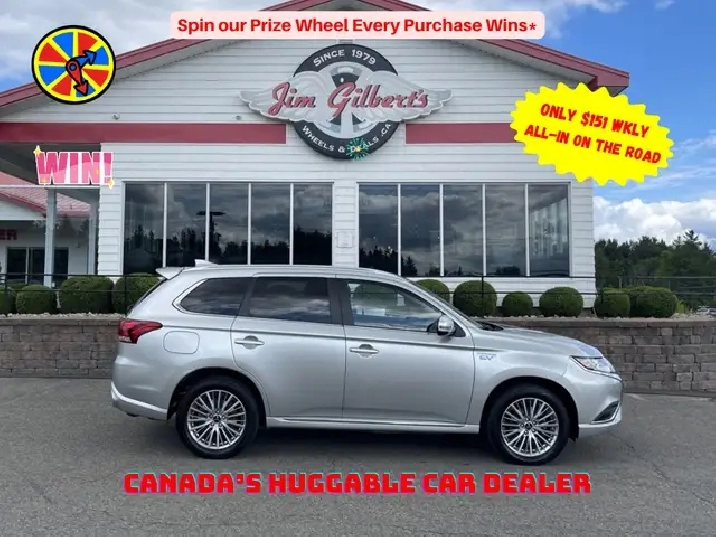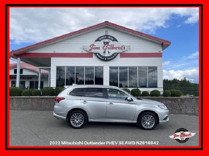 Only $143 weekly all in, Drive it away - 0 DownTransport yourself to the future with our 2022 Mitsubishi OUTLANDER PHEV SE. This all-wheel drive beauty is not your average used vehicle, it's a certified huggable car from Canada's most trusted dealer, Jim Gilberts Wheels and Deals. With its factory warranty and 12 month huggable guarantee, you can drive with peace of mind. Cozy up in the heated seats and let the rear camera and blind spot detection keep you safe on the road. The sleek design is complete with stylish alloys, making heads turn wherever you go. And with full financing options, 0 down payments, and trade-ins accepted, there's no reason to not experience the ultimate driving experience today by calling us at 506-459-6832!