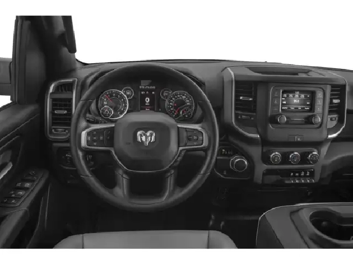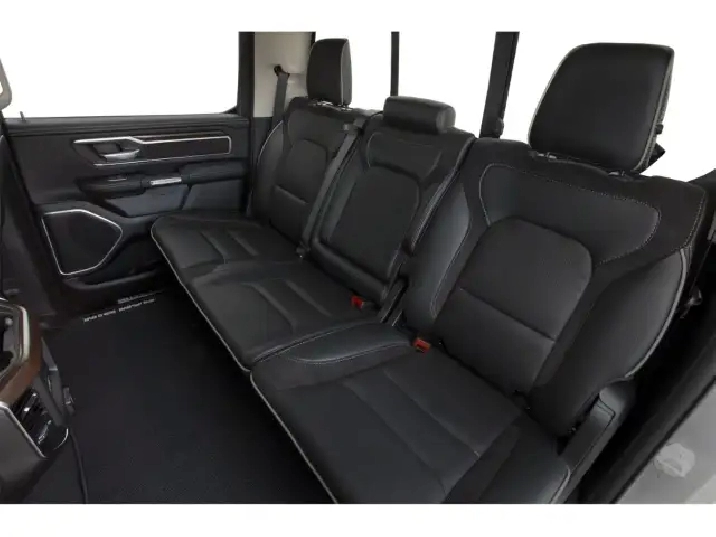 The exterior of the Ram 1500 Laramie stands out with sleek alloy wheels and eye-catching aesthetics. Inside, luxury is paramount with leather upholstery and a leather-wrapped steering wheel, complemented by heated and cooled front seats for ultimate comfort year-round. Enjoy the convenience of power windows and seats, as well as keyless entry for easy access to your ride.
